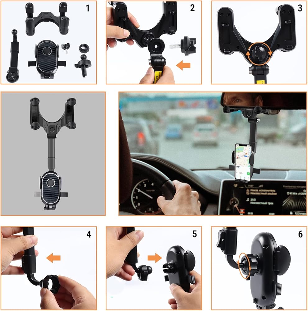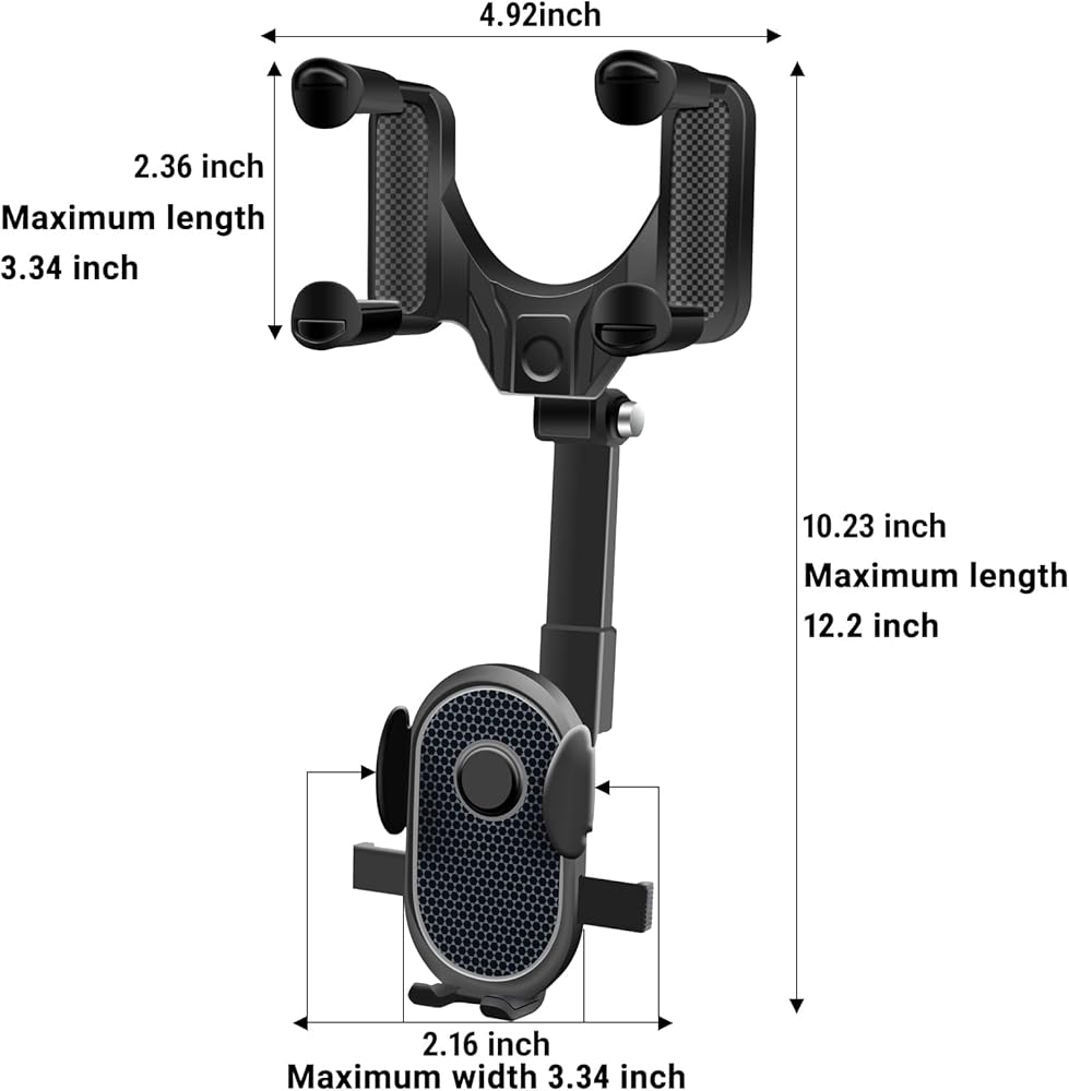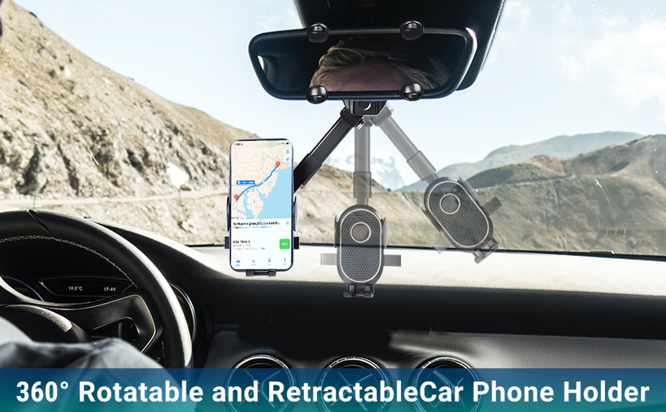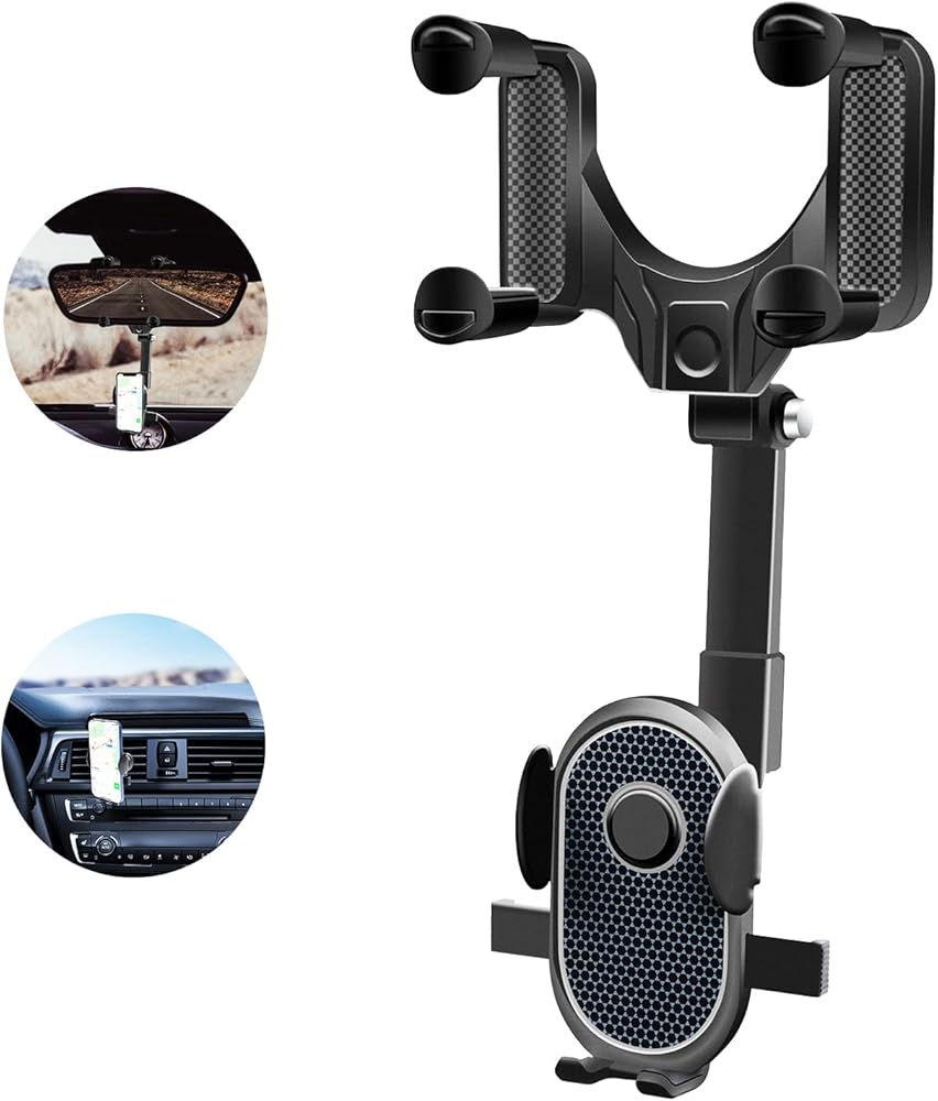 حامل هاتف للسيارة قابل للدوران والسحب، حامل هاتف بمرآة الرؤية الخلفية للسيارة، تعديل دوران 360 درجة مع قاعدة كوب شفط وذراع تلسكوبي لهواتف iPhone وSamsung والهواتف الذكية الأخرى باللون الأسود