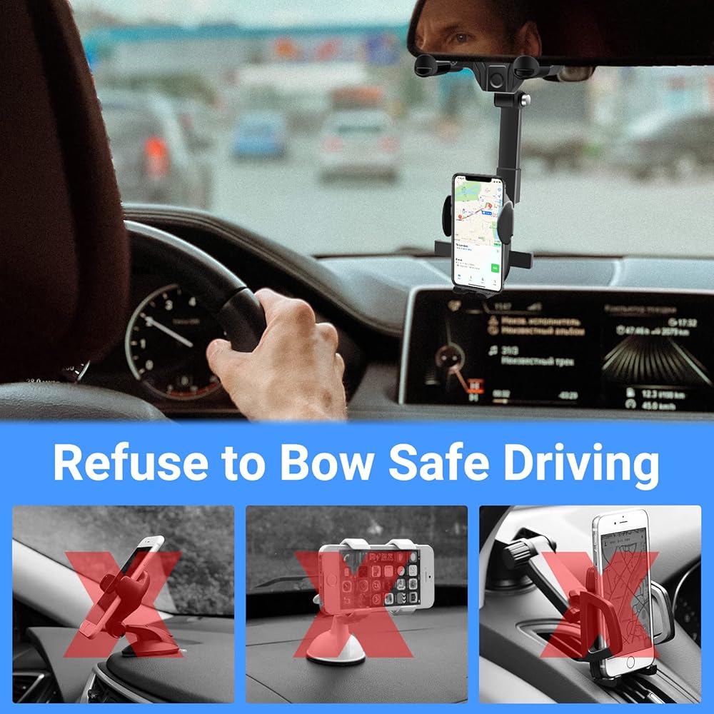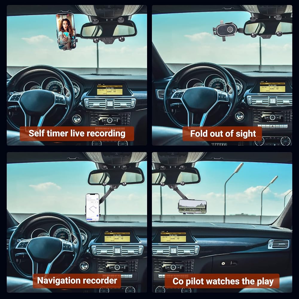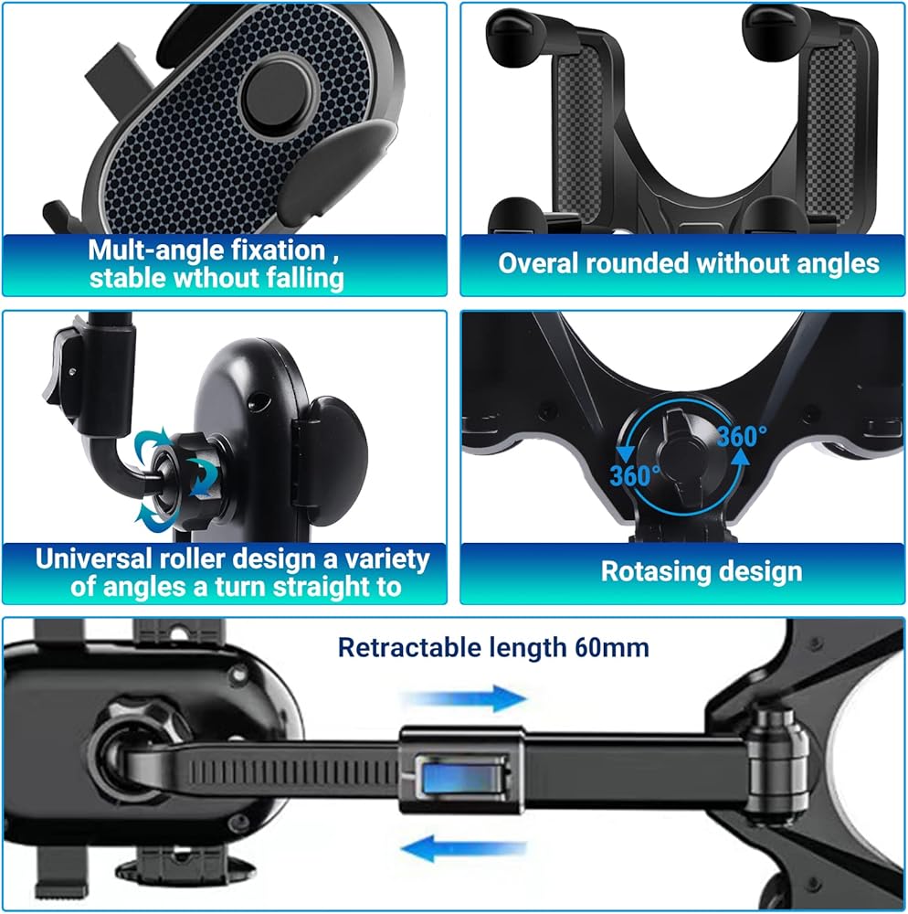 حامل هاتف للسيارة قابل للدوران والسحب، حامل هاتف بمرآة الرؤية الخلفية للسيارة، تعديل دوران 360 درجة مع قاعدة كوب شفط وذراع تلسكوبي لهواتف iPhone وSamsung والهواتف الذكية الأخرى باللون الأسود