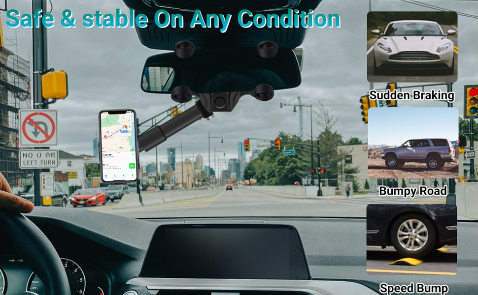 ✨[تشغيل آمن بيد واحدة] يتميز حامل السيارة المثبت على لوحة أجهزة القياس لجهاز iPhone بتصميم أربعة مخالب يحافظ على ثبات هاتفك في مكانه. من السهل عليك ارتداء هاتفك وخلعه بيد واحدة فقط.