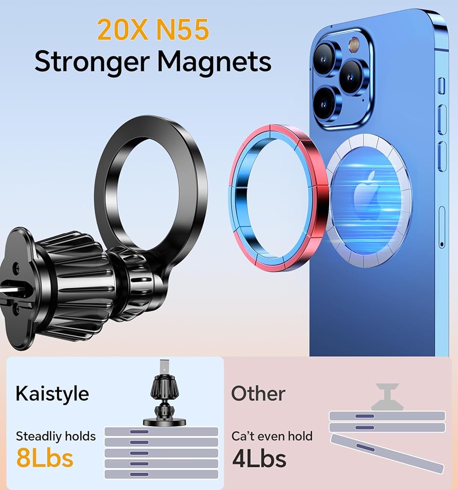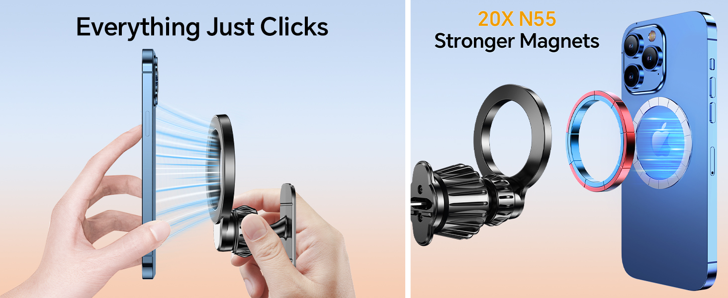 👍جاذبية مغناطيسية قوية👍يستخدم حامل السيارة هذا الشفط القوي للمغناطيسات القوية لتثبيت هاتف iPhone الخاص بك بقوة حتى على الطرق الوعرة أو المنعطفات الحادة أو الكبح الشديد، فلا داعي للقلق بشأن سقوط هاتفك أثناء القيادة.