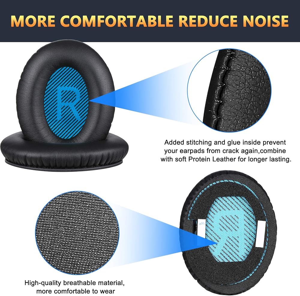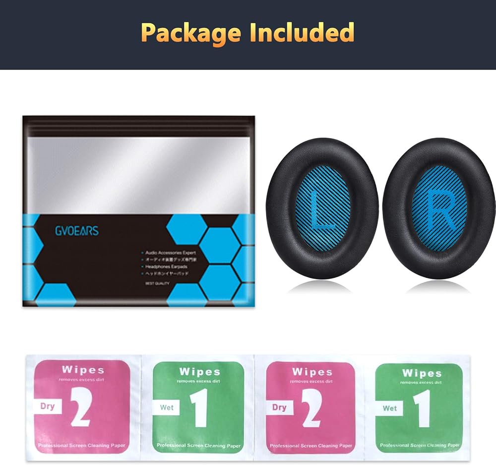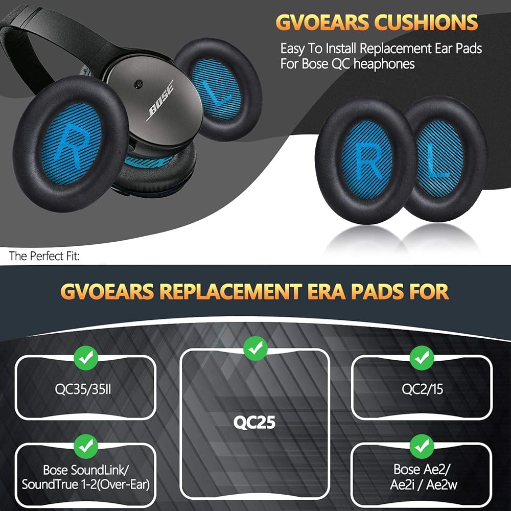 وسائد أذن بديلة مطورة من GEVO لسماعات Bose QC25 - مجموعة الوسائد تناسب أيضًا QuietComfort2/15/35&35ii/Ae2/Ae2i/Ae2w وSoundLink 1&2/SoundTrue 1&2 (فوق الأذن) (حصائر زرقاء سماوية)