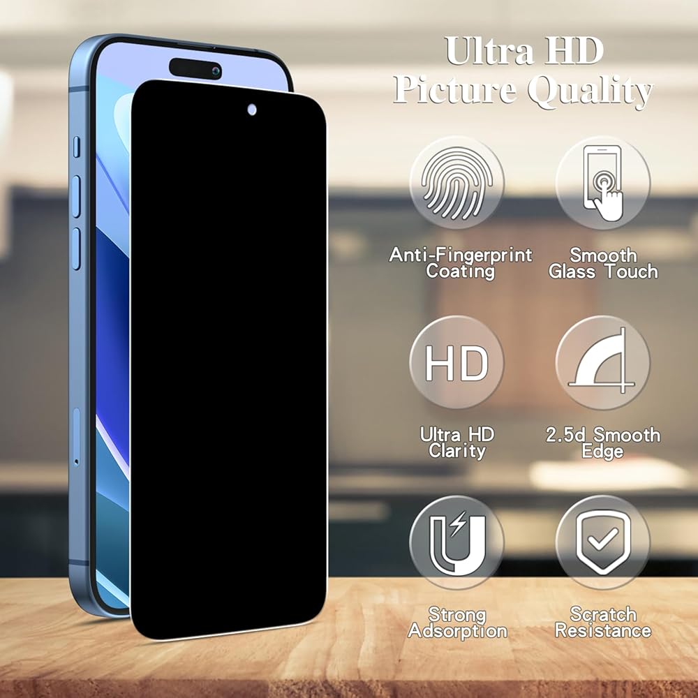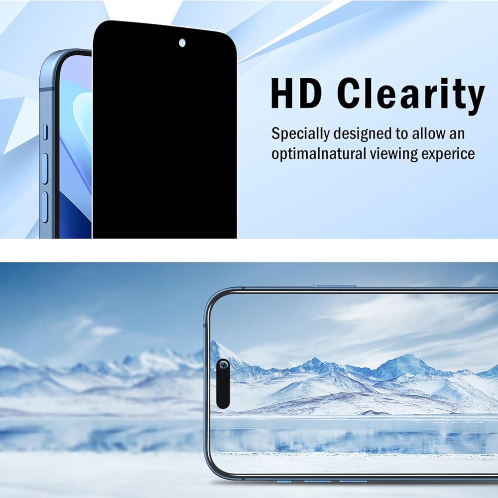 رفيع للغاية ومقاوم: تم تصميم طبقة الزجاج المقوى للخصوصية بصلابة 0.33 رفيعة للغاية 9H، والتي يمكن أن تمنع بشكل فعال الخدوش اليومية وتحمي شاشة الهاتف من الكسر