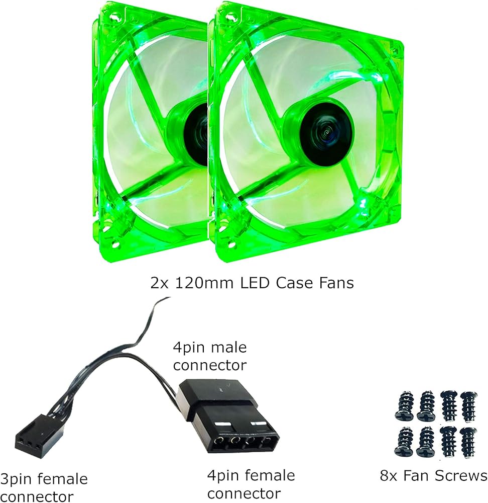 With 4 x Green LED Lights. Connect to Power Supply or Motherboard