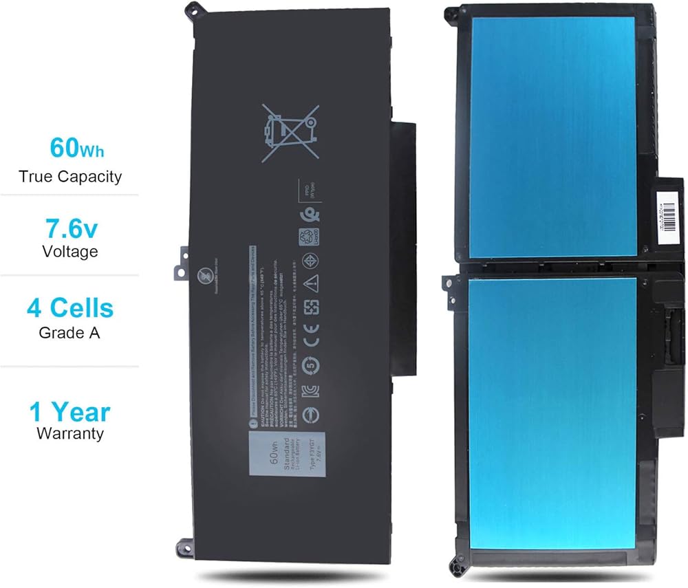 • استبدال جزء البطارية: 7.6 فولت 60 وات في الساعة بطارية F3YGT ذات 4 خلايا استبدل الجزء F3YGT DM3WC 2X39G 0DM3WC 0F3YGT 451-BBYE 453-BBCF KG7VF. (استبدلها فقط ببطارية من النوع 60 وات في الساعة، ولا تناسب DJ1J0 42WHr 3-Cell! يرجى التحقق من البطارية الأصلية للتأكد من حصولك على البطارية البديلة الصحيحة!)