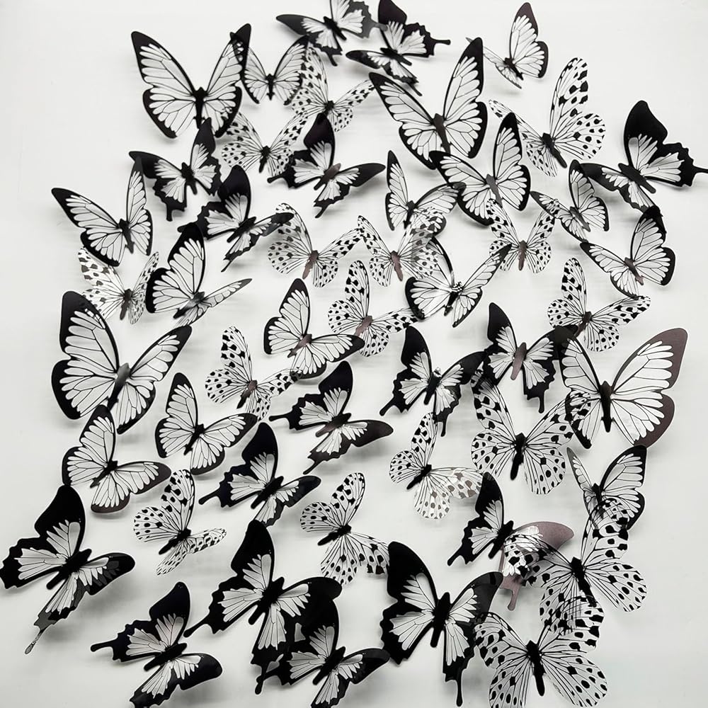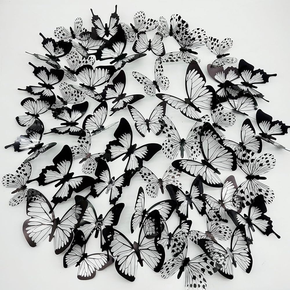 🦋المادة والجودة: صُنعت الملصقات الجدارية على شكل فراشة باستخدام الفينيل، وهو مصنوع خصيصًا ليلتصق بمعظم الجدران الداخلية دون إتلافها عند إزالتها، الكمية: ثمانية وأربعون ملصق حائط على شكل فراشة.