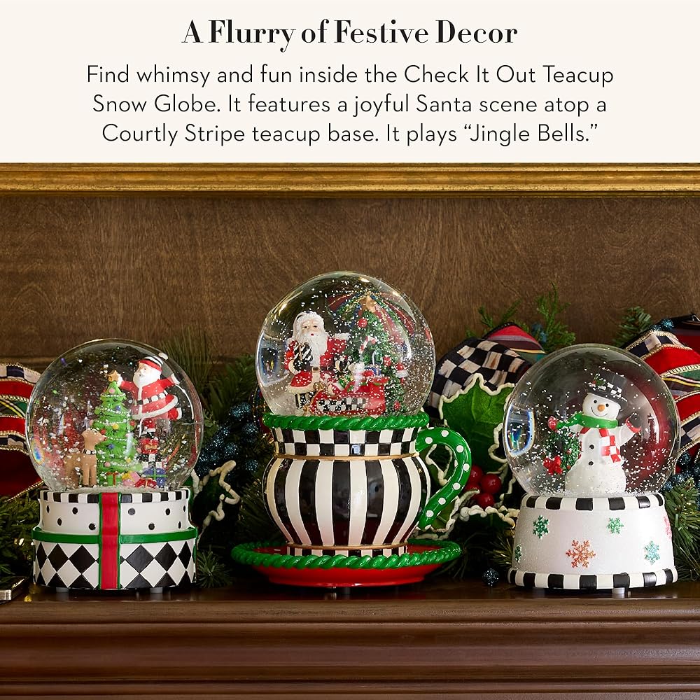 • صندوق الموسيقى SNOW GLOBE: كرات الثلج لعيد الميلاد من MacKenzie-Childs تسمح لها بالثلج بأناقة. تتميز كل كرة ثلجية فريدة من نوعها بمشهد عطلة مبهج وتلعب نغمة عطلة احتفالية للمساعدة في جعل الفصول مرحة ومشرقة.