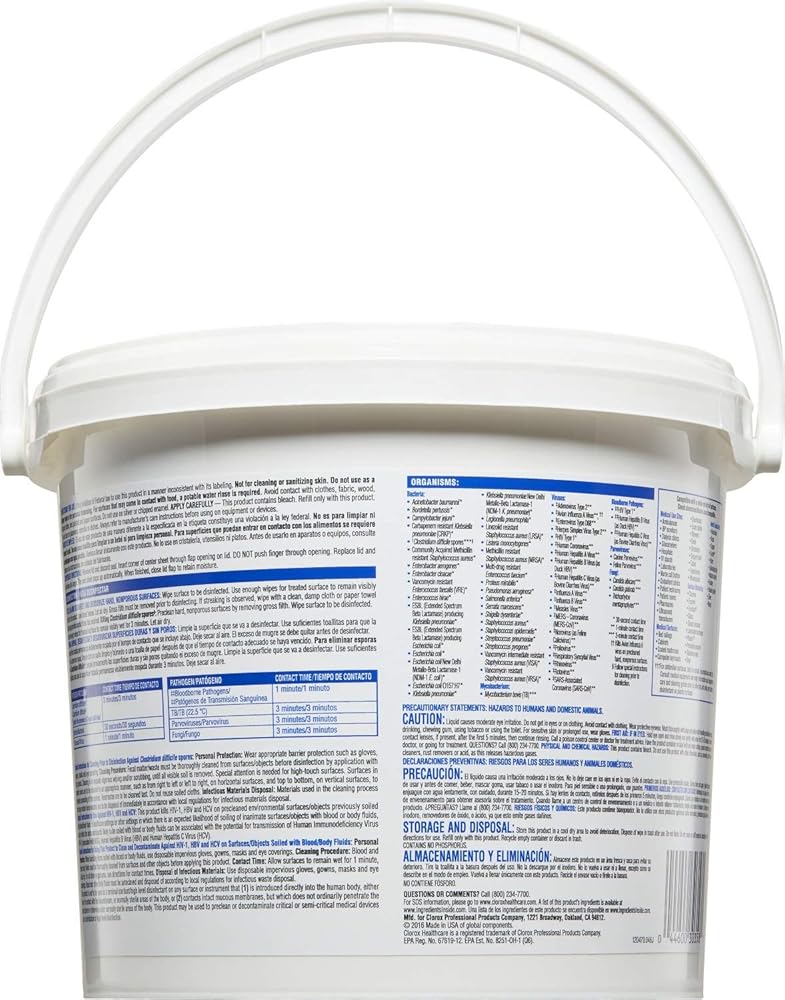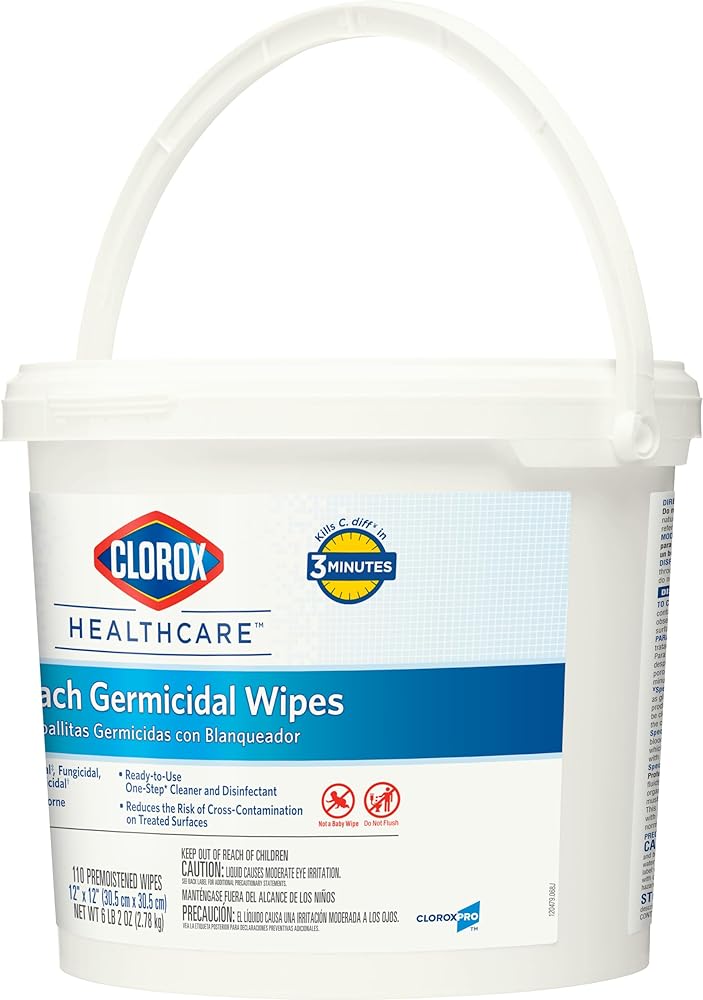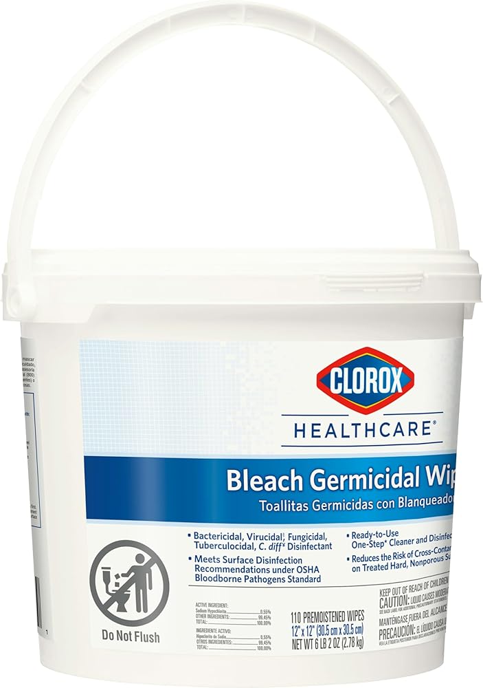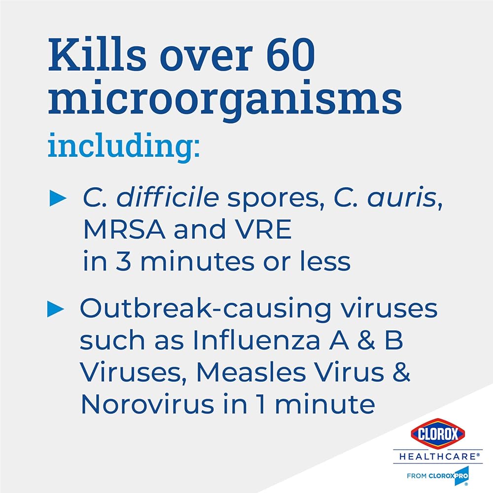 Your proven bleach solution for cleaning. Clorox Healthcare Bleach Germicidal Wipes are EPA registered to kill C. difficile* and C. auris in 3 minutes and 58 other microorganisms in 1 minute or less.** These one step** cleaner disinfectant wipes clean, disinfect and deodorize surfaces with an optimized formula that leaves less residue behind. Clorox Healthcare germicidal wipes have proven efficacy against outbreak causing viruses, emerging viral pathogens, MRSA and VRE. These disinfectant wipes have fast contact times so you can quickly disinfect healthcare surfaces.** Use in healthcare settings including hospitals, medical facilities, dental offices, veterinary offices and long term care facilities. Do not flush. *Follow special instructions for cleaning prior to disinfection. **When used as directed. A precleaning step is required to kill Clostridioides difficile and Candida auris. ****Analysis of Clorox Healthcare customer sales data, November 2023.