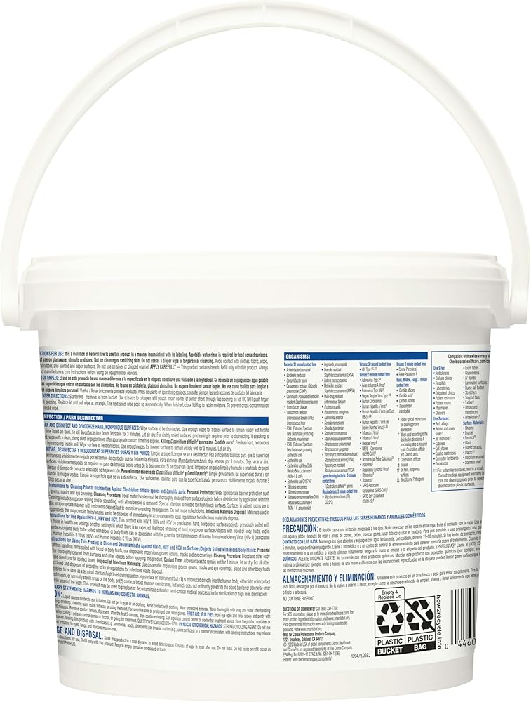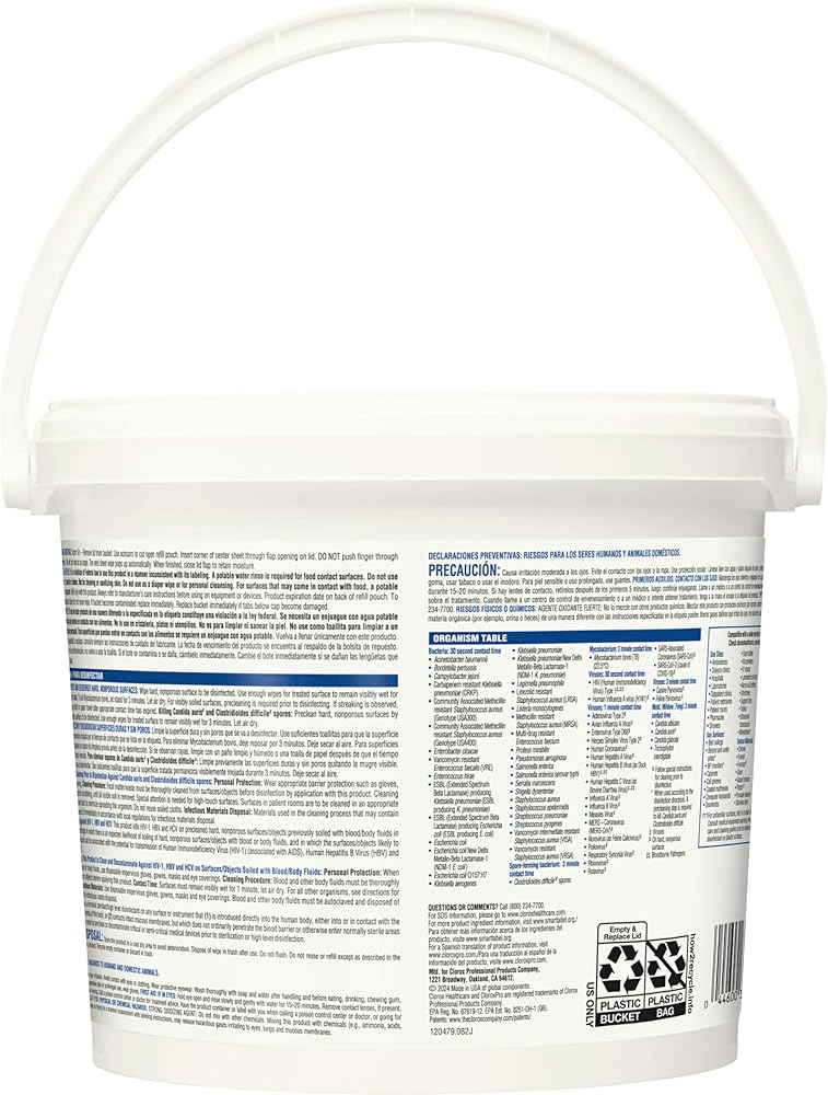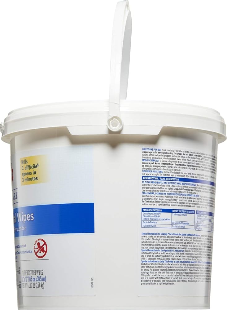GERMICIDAL BLEACH WIPES: These one step** cleaner disinfectant wipes are EPA registered to kill C. difficile* and C. auris in 3 minutes and 58 other microorganisms in 1 minute or less;** Pack may vary
