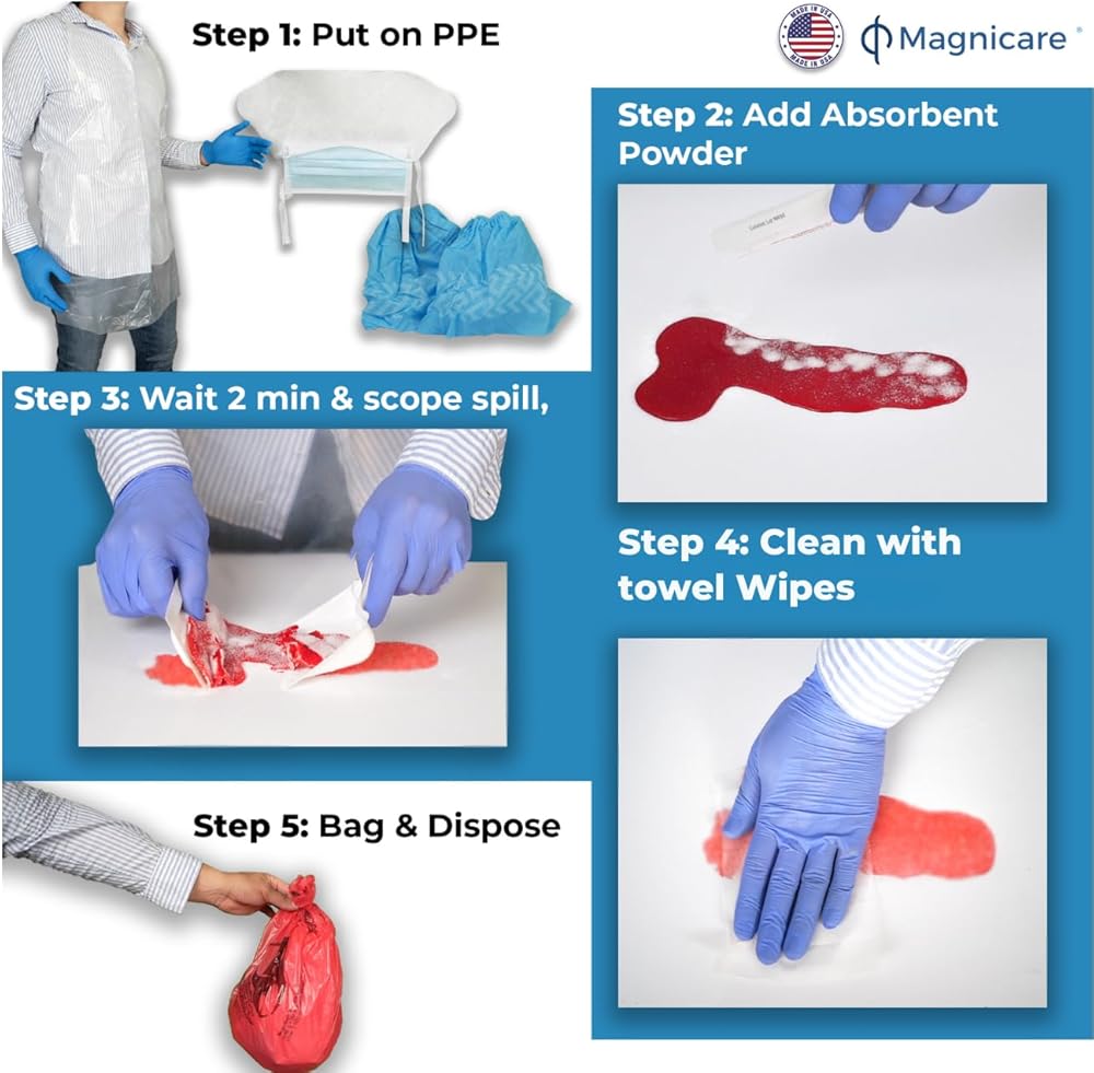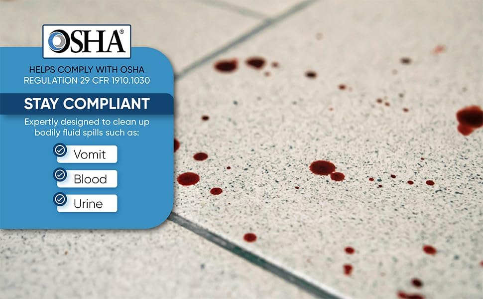 OSHA Compliant for Workplace Safety: Helps businesses meet Federal OSHA regulation 1910.1030(d)(3)(i), ensuring compliance with health and safety standards in handling bloodborne pathogens and bodily fluids, ideal for schools, restaurants and public spaces.