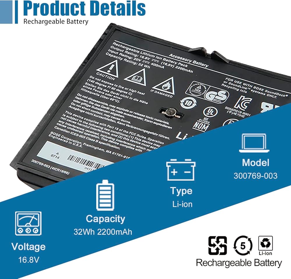 المواصفات: الموديل: 300769-003/ النوع: ليثيوم أيون / الجهد: 16.8 فولت / السعة: 32 وات في الساعة 2200 مللي أمبير في الساعة