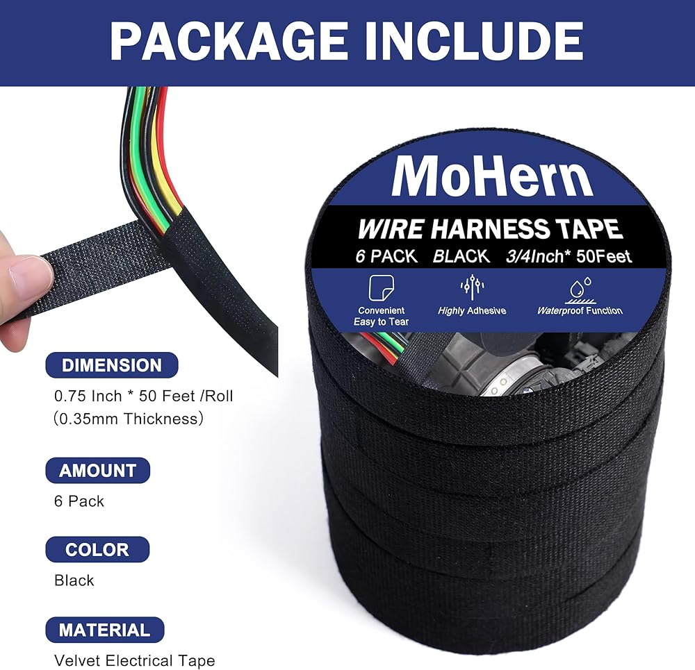 This wire loom tape is specifically designed for high temperature wirings, making it an essential automotive tape for under-the-hood applications. With excellent thermal resistance, it operates efficiently between -40°F and 257°F. This ensures that your wiring remains intact and functional even in extreme conditions, providing peace of mind for long drives and challenging environments.