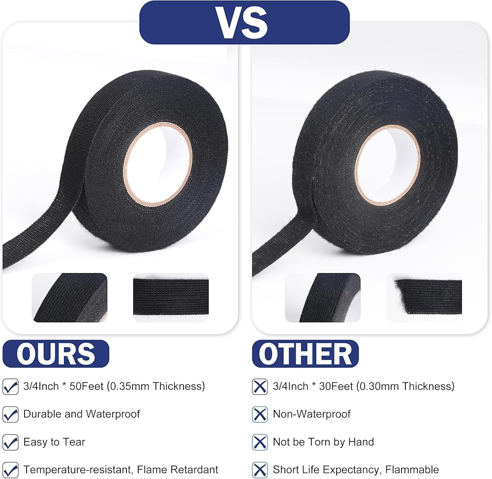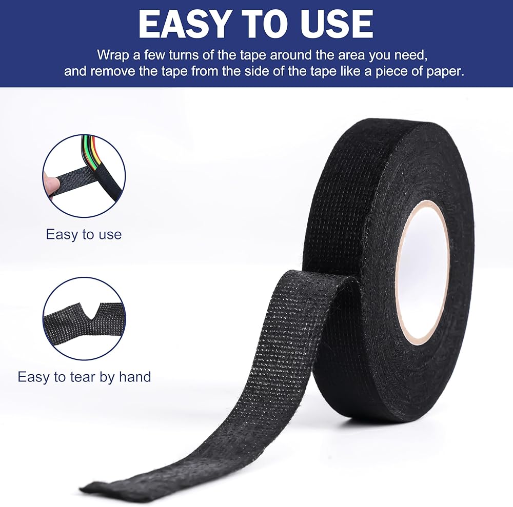 The fabric electrical tape uses a silicone adhesive that ensures it does not leave any messy residue upon removal. This makes it ideal for achieving clean and professional results in wire harness wrap and cable management. Whether you need to reconfigure your wiring or replace the tape, the residue-free feature ensures that you won't have to deal with sticky remnants that can attract dirt and dust.
