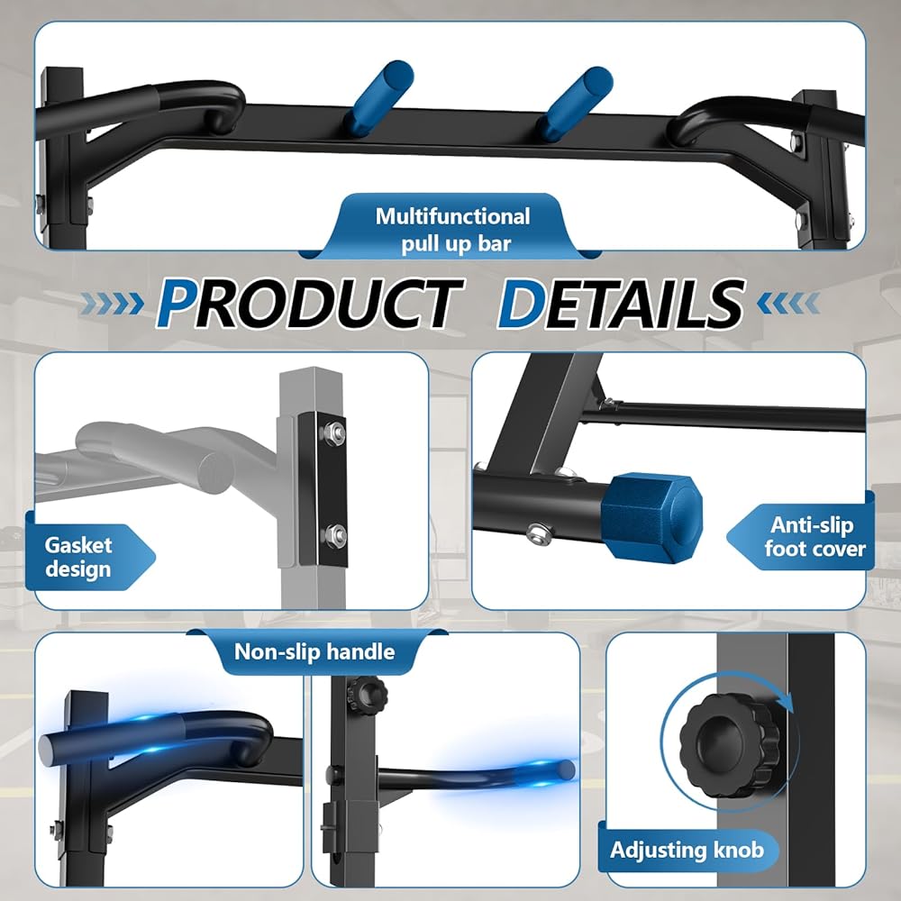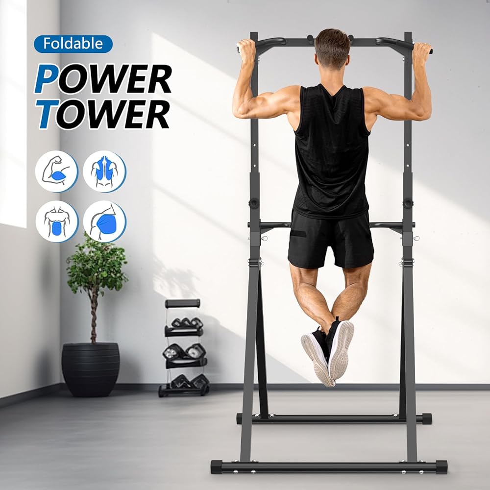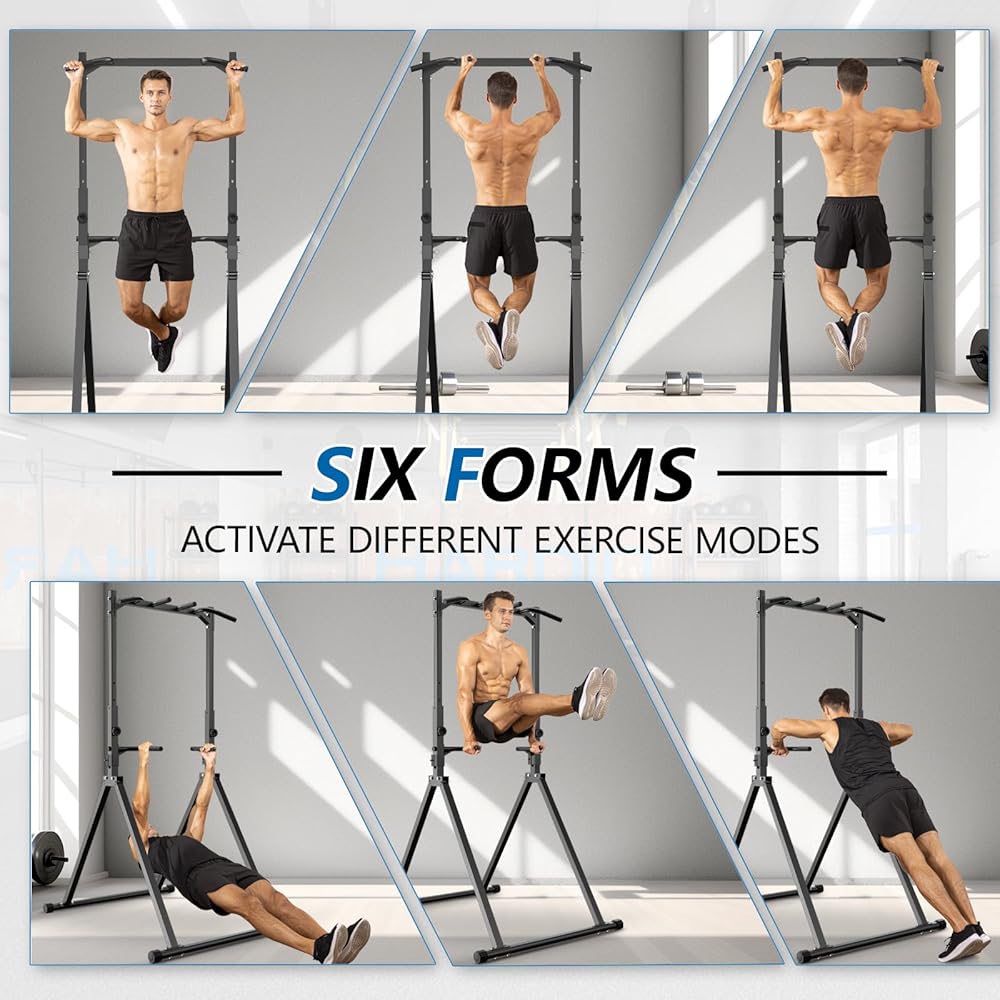 【Multi-Functional Power Tower】: The dip station's pull up bar and handle design can support you to do more postures and movements. For example, Pull-up, Dip station, Knee raise and so on. Being able to exercise perfectly to different muscle groups in the body.