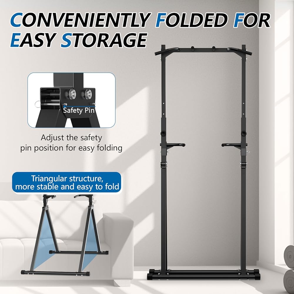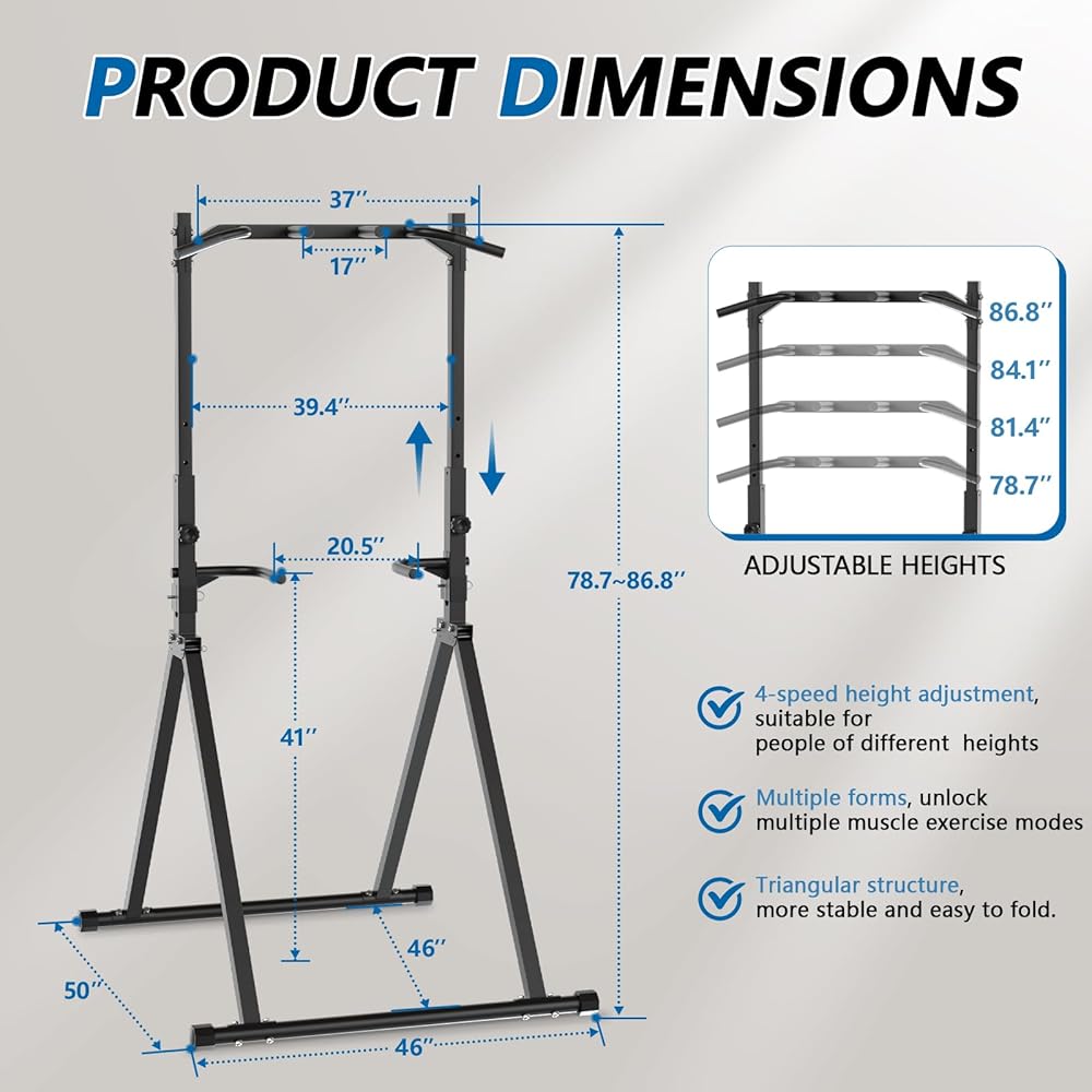 【Folding Structure】:The foldable pull up bar adopts a foldable triangular structure design, which can facilitate the storage of the power tower. The folded size is 46 inches * 12.5 inches, which saves more room space.