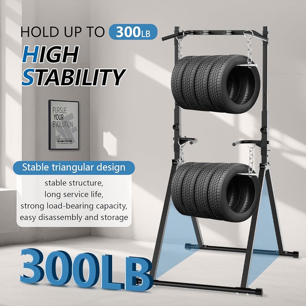 【Stable and Sturdy】:The pull up bar stand is made of hard steel tube, it's special triangle structure makes the pull-up tower more stable and strong. The pull up station can well withstand the weight of 300 pounds, don't worry about the product bending or deforming.