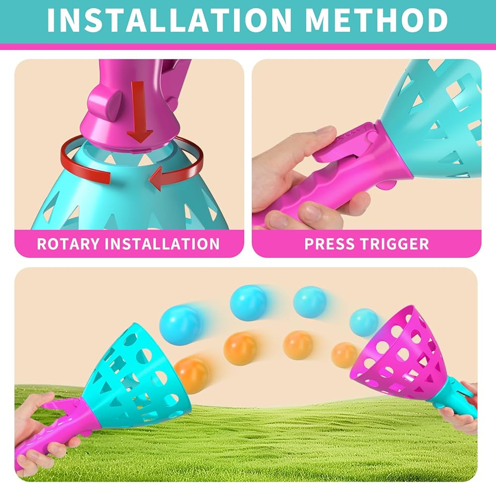 استمتع بتجربة لعبة Pop Pass Catch الممتعة - ارتد، التقط! يحتاج الأطفال فقط إلى وضع الكرة في جهاز الاستقبال، ثم اضغط ببساطة على المفتاح، وسوف ترتد الكرة تلقائيًا (يمكنك ارتداد المزيد من الكرات في كل مرة)، وفي الوقت نفسه، يمكن للأطفال الآخرين الإمساك بالكرة أثناء الجري. من الممتع جدًا مقارنة من يمسك المزيد من الكرات! لا تحتاج إلى بطاريات، إطلاق يعمل بالطاقة للأطفال بنسبة 100% ومتعة في الهواء الطلق. ألعاب مثالية للاستخدام في الأماكن المغلقة والمفتوحة، لعبة بوب باس للالتقاط الكرة للأطفال الأولاد من سن 3-5 و4-8.