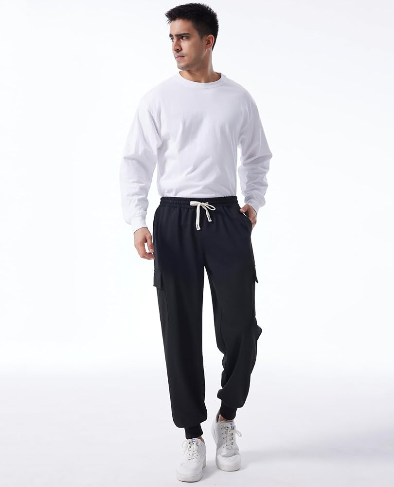 المواد: بنطال رياضي رجالي مصنوع من نسيج مريح وناعم، مصمم بذكاء ليجمع بين الموضة والراحة