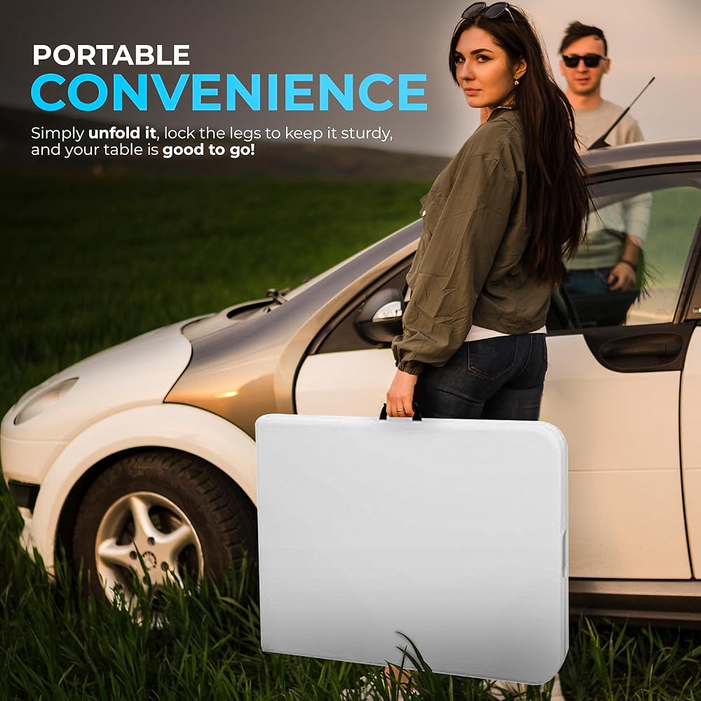EASY ASSEMBLY: Table is ready for use right out of the box; simply unfold it, lock the legs to keep it sturdy, and your table is good to go!