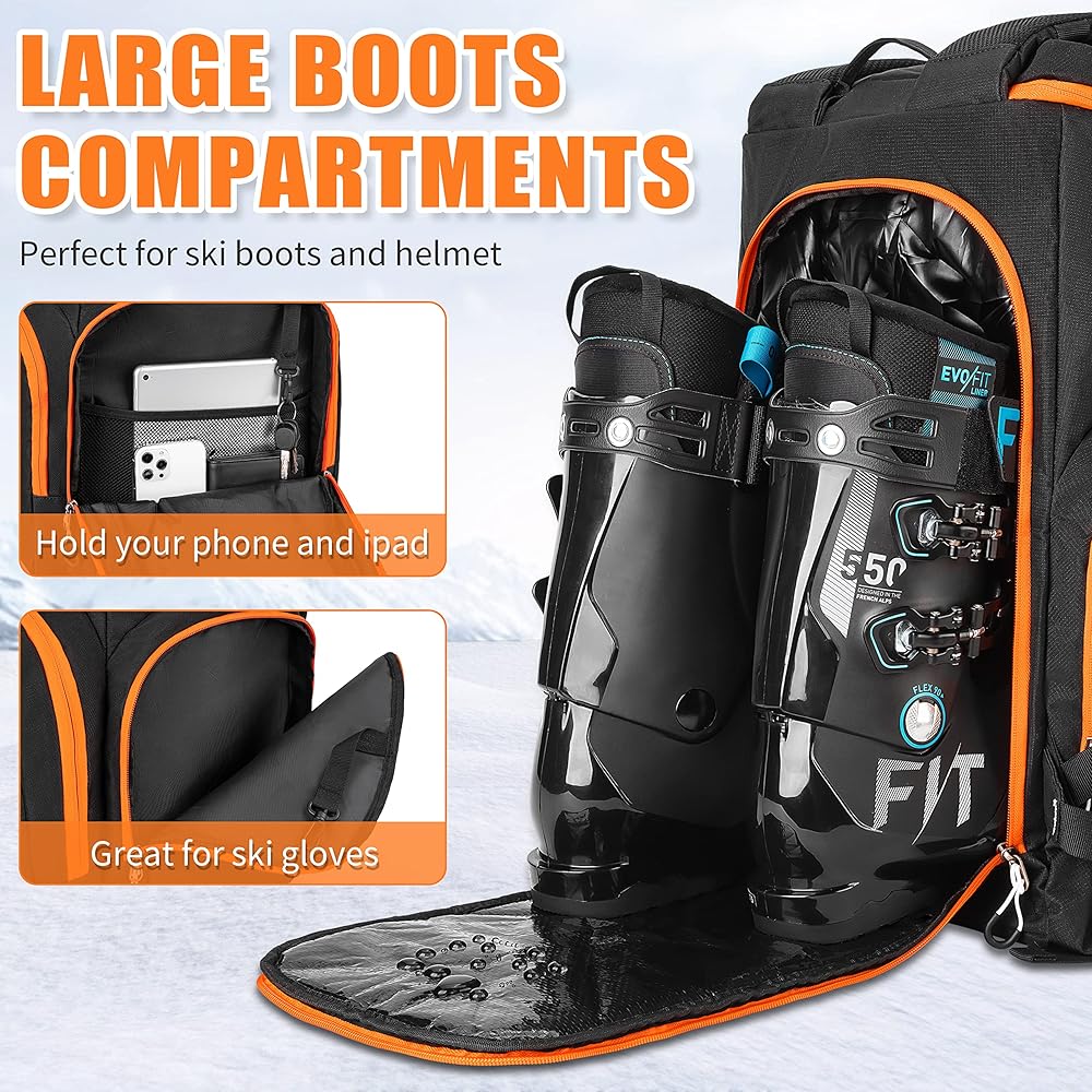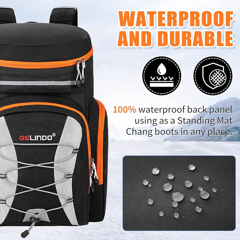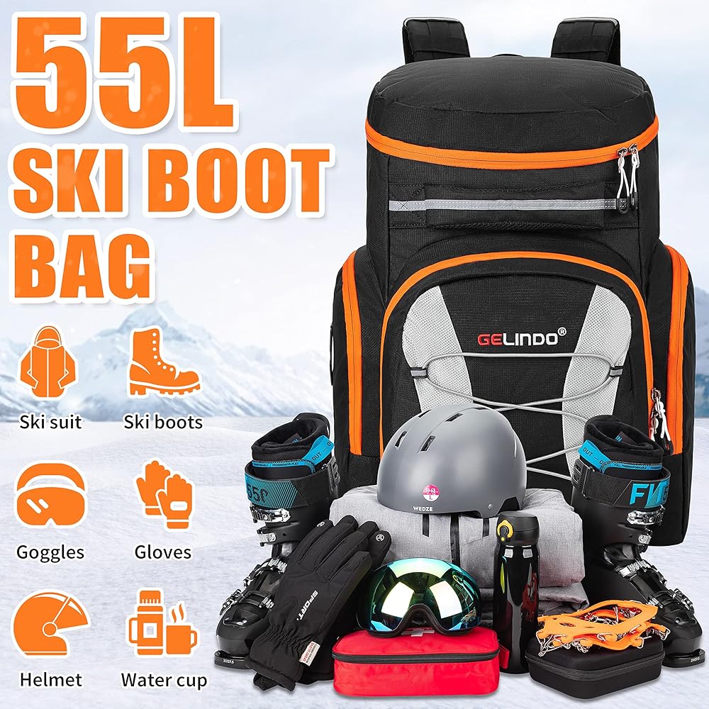سعة تخزين 55 لتر: تتميز حقيبة أحذية التزلج جيليندو بتصميم مدروس، مما يتيح لك الاستمتاع بالرياضات الثلجية في الشتاء! مع سعة تخزين تبلغ 55 لترًا، فهي بالتأكيد كبيرة بما يكفي لتخزين أحذية التزلج والخوذ والنظارات والملابس والأشياء الثمينة وما إلى ذلك بسهولة. إذا كان لديك الكثير من المعدات للتخزين والنقل، فمن المؤكد أن هذه الحقيبة ستنجز المهمة.