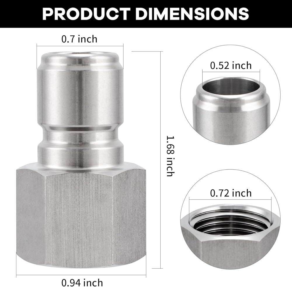 • Durable: The quick disconnect set is made of high quality stainless steel, resistant to high temperature, corrosion, and pressure. Can be used for a long time.