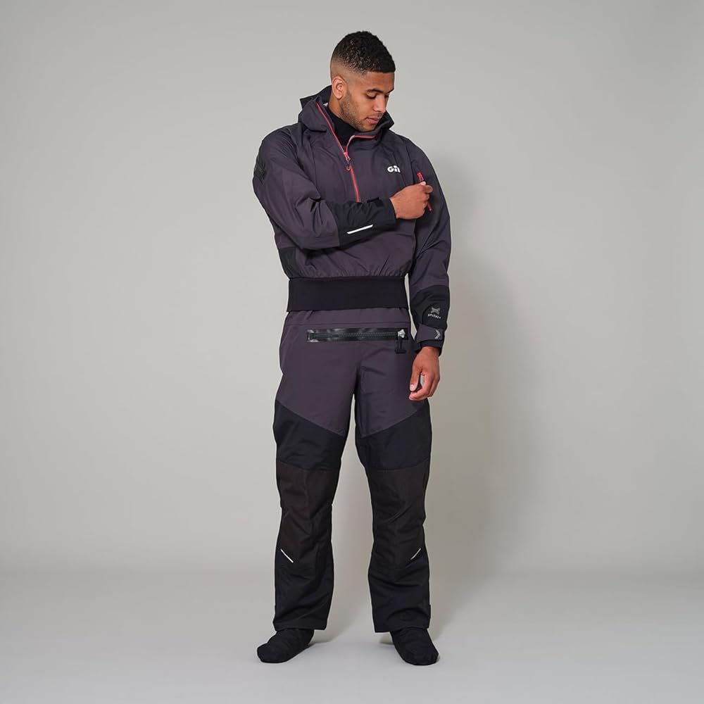 الحماية القصوى في بدلة Verso Drysuit التي تتميز بنسيج XPLORE ذو 3 طبقات ومعالجة نباتية XPEL لمقاومة استثنائية للماء والتهوية. تم تأمين تصميم المدخل الخلفي بسحاب متين مقاوم للماء لإبقاء الجزء الأكبر بعيدًا عن صدرك مع سحاب متين مقاوم للماء في المقدمة.