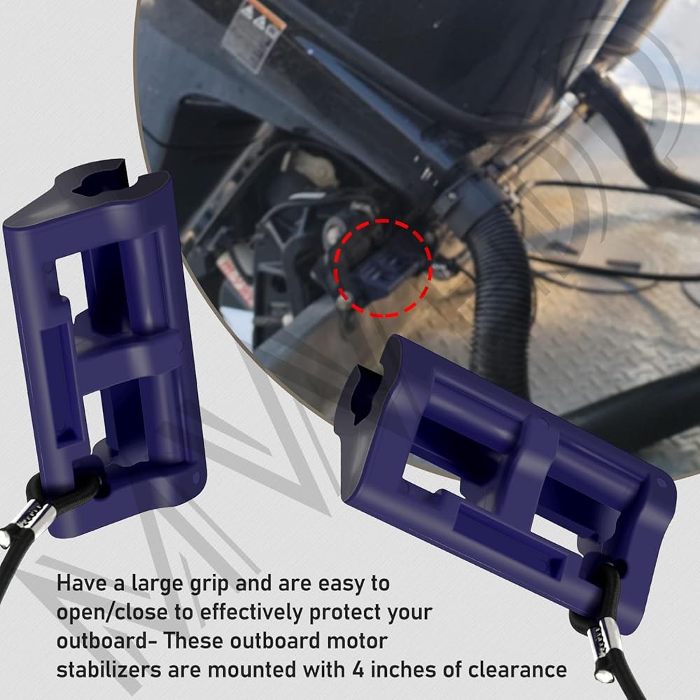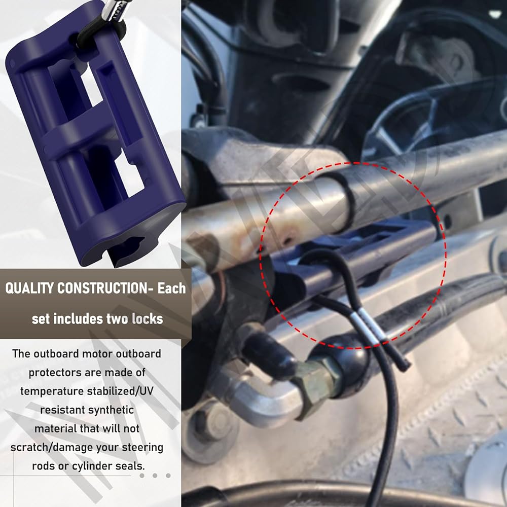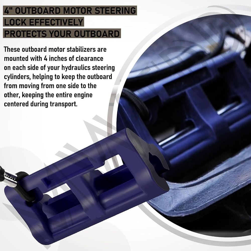 QUALITY CONSTRUCTION- Each set includes two locks. The outboard motor outboard protectors are made of temperature stabilized/UV resistant synthetic material that will not scratch/damage your steering rods or cylinder seals. Have a large grip and are easy to open/close to effectively protect your outboard- These outboard motor stabilizers are mounted with 4 inches of clearance!