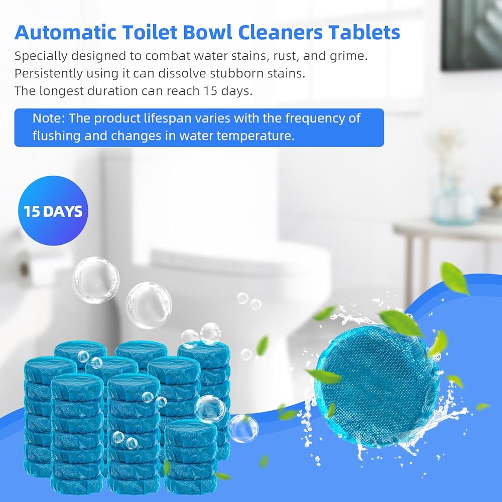 إطالة عمر المرحاض: تحتوي أقراص تنظيف خزان المرحاض لدينا على تركيبة خفيفة غير ضارة بالمكونات الداخلية للمرحاض، مما يضمن الموثوقية والسلامة على المدى الطويل.
