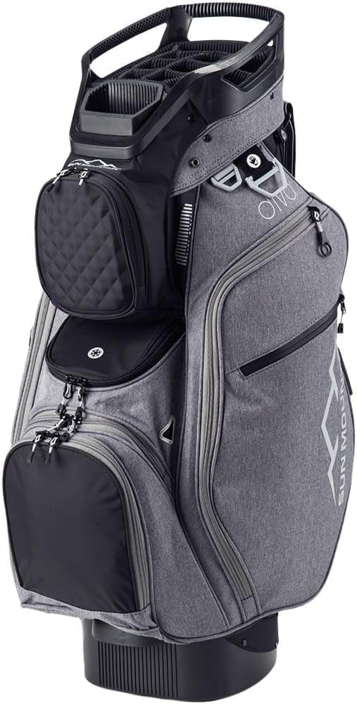 Sun Mountain 2024A Women's DivaA Golf CartA BagFeatures: * Specifically designed for use on riding golf carts * 14A individual club dividers run length of bag to protect clubs and separate club shafts * Integrated lift handles provide convenient, easy lifting and loading of bag in golf cart * Cart strap pass-through and front-facing pockets allow fullA access when bag is strapped to cart * Smart Strapa,, System attaches bag to riding cart with 2 VelcroA straps to prevent bag from twisting * Single carry strap * Pockets: 8 * 2 full-length apparel pockets * Water-resistant, velour-lined valuables pocket * Velour-lined rangefinder pocket * Ventilated cooler pocket * Golf ball pocketA * Multiple accessory pockets * Includes matching rainhoodA