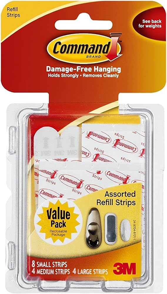 3M Command 17200CL شرائط إعادة تعبئة متنوعة، 8 صغيرة 4 متوسطة 4 شرائط كبيرة، 3 عبوات