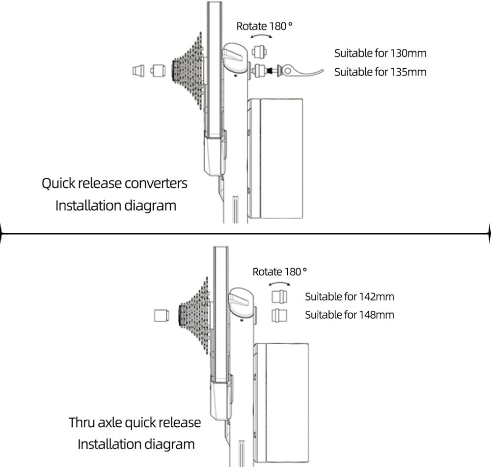𝐄𝐚𝐬𝐲 𝐈𝐧𝐬𝐭𝐚𝐥𝐥𝐚𝐭𝐢𝐨𝐧: Simple and quick setup process allows for effortless installation, making it convenient for cyclists of all skill levels to switch between quick release and thru axle systems