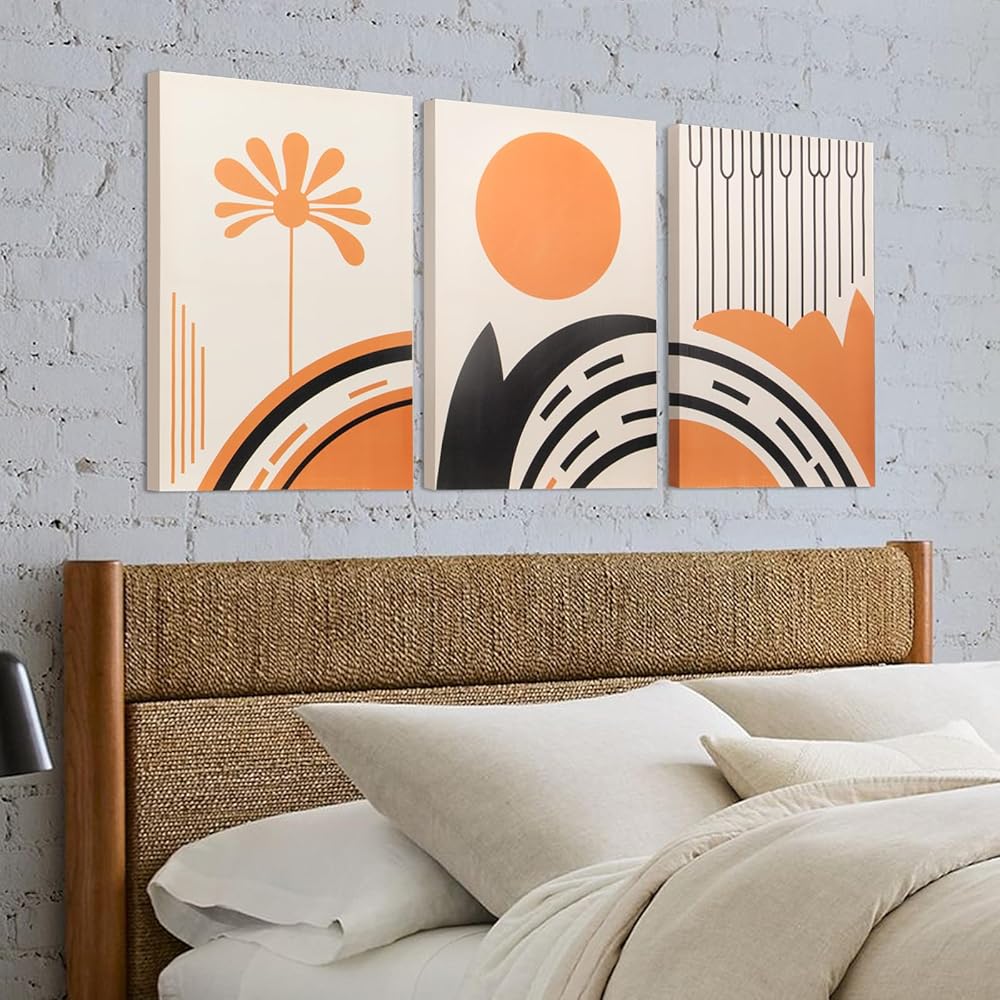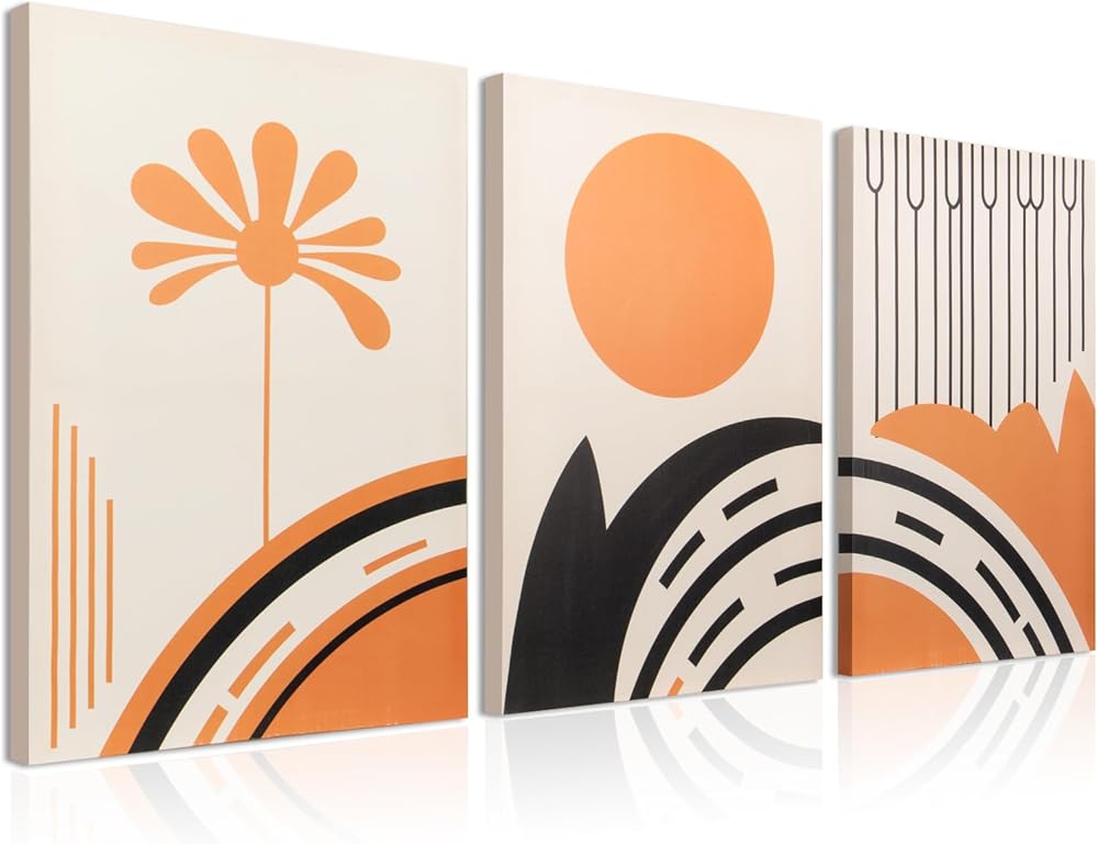 TooCust قماش جدار الفن مجموعة من 3،16x24 لوحات تجريدية جدار الفن لغرفة المعيشة، برتقالي مجردة قماش جدار الفن الملون، صور مقاومة للبهتان ديكور الحائط، ديكورات الحائط لغرفة النوم، مكتب