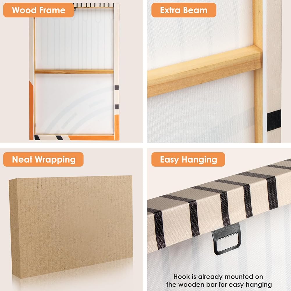 • سهلة التعليق: كل عبوة مغلقة، كل لوحة فنية جدارية قماشية مشدودة بالفعل على إطارات خشبية، وخطاف معدني مثبت أيضًا، وجاهزة للتعليق، ولا تحتاج إلى التجميع.