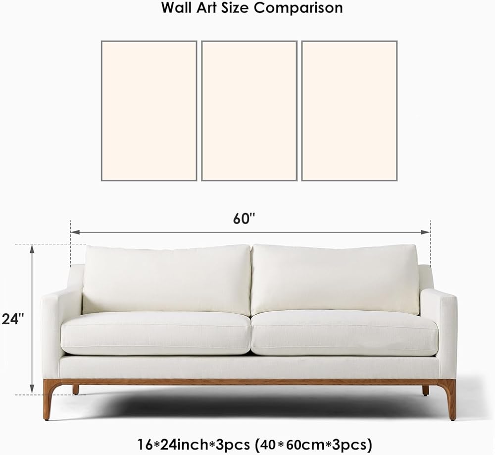 • المقاس: 3 لوحات، كل لوحة قماشية بمقاس 16 بوصة × 24 بوصة (40 سم × 60 سم)، 48 بوصة (122 سم) إجمالاً.