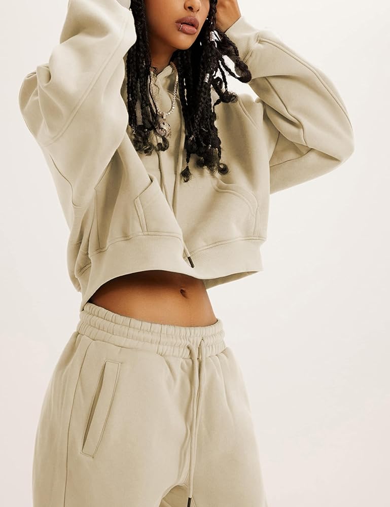 التصميم: بدلات رياضية نسائية مكونة من قطعتين علوية وبنطلون، سراويل رياضية عالية الخصر، حزام خصر مرن وأساور أكمام، مقاس فضفاض، مجموعة سراويل رياضية للسيدات بها جيوب عملية، مجموعة رياضية من الصوف مناسبة للطقس البارد، ملابس الخريف والربيع والشتاء