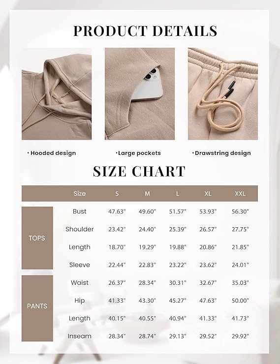 المزايا: طقم هودي كاجوال مكون من قطعتين للسيدات، سترة بقلنسوة بأكمام طويلة، سراويل الركض مع جيبين جانبيين، خصر مطاطي برباط، بلوفر أنيق وجزء سفلي يمكن أيضًا ارتداؤه بشكل منفصل، لطيف وكاجوال على حد سواء.