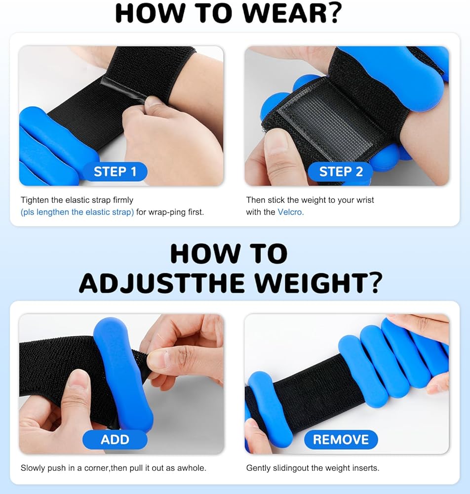 يمكن أن تناسب المعصمين وكذلك أوزان الكاحل. من السهل ارتداؤه أو خلعه، ويمكن لأي شخص أن يرتديه.