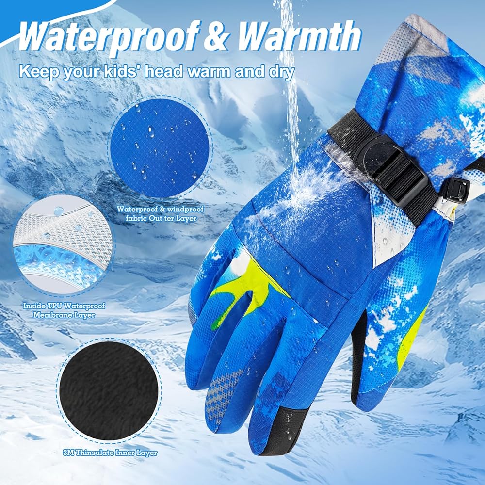 مقاومة للماء والرياح: تتميز قفازات التزلج للأطفال لدينا بغطاء مركب من خمس طبقات وغشاء مقاوم للماء، مما يضمن بقاء أيدي طفلك جافة ومحمية من الثلج والرياح الباردة أثناء الأنشطة الخارجية.