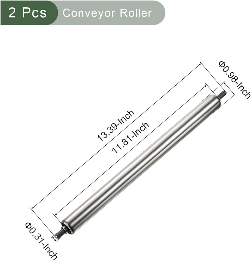 WHAT YOU GET - The package comes with 2pcs conveyor roller that is an axle diameter of 8 mm/0.31 inches, a roller diameter of 25 mm/0.98 inches, length of 300mm/11.81 inches, 340mm/13.39 inches total length.