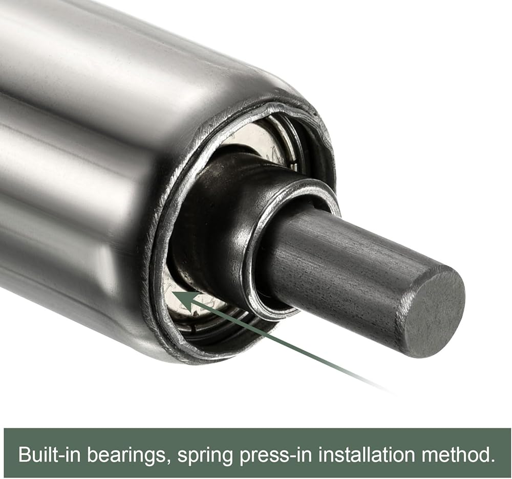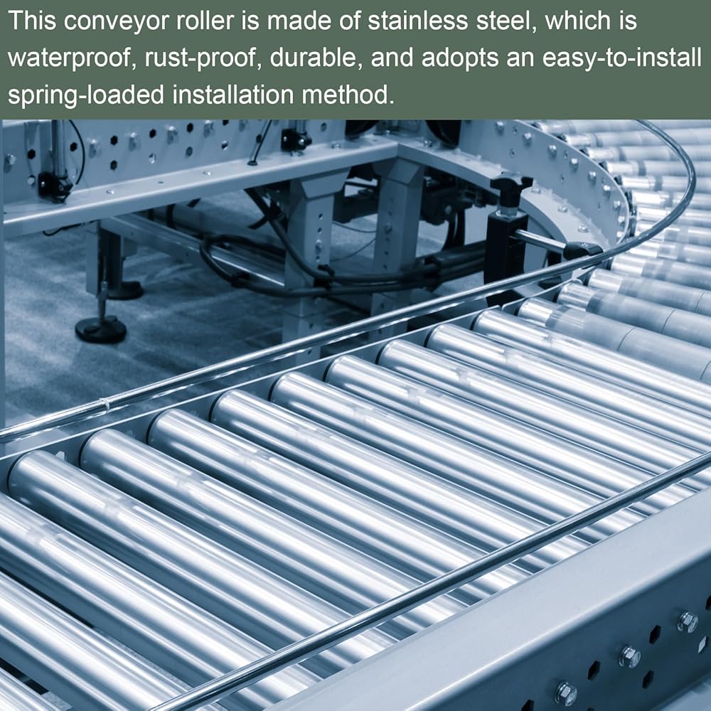 • RELIABLE MATERIAL - This conveyor roller is made of stainless steel, which is waterproof, rust-proof, durable, and adopts an easy-to-install spring-loaded installation method.