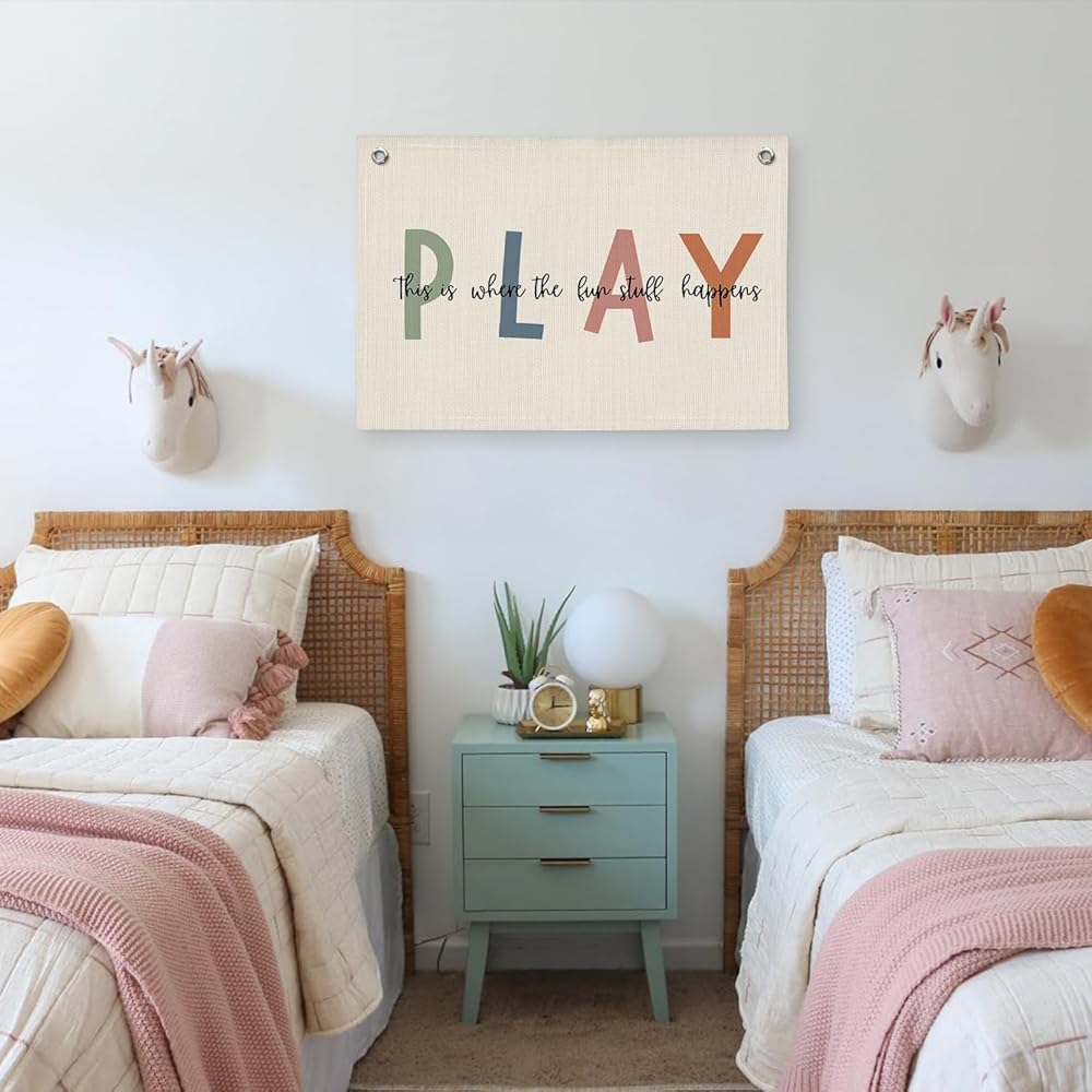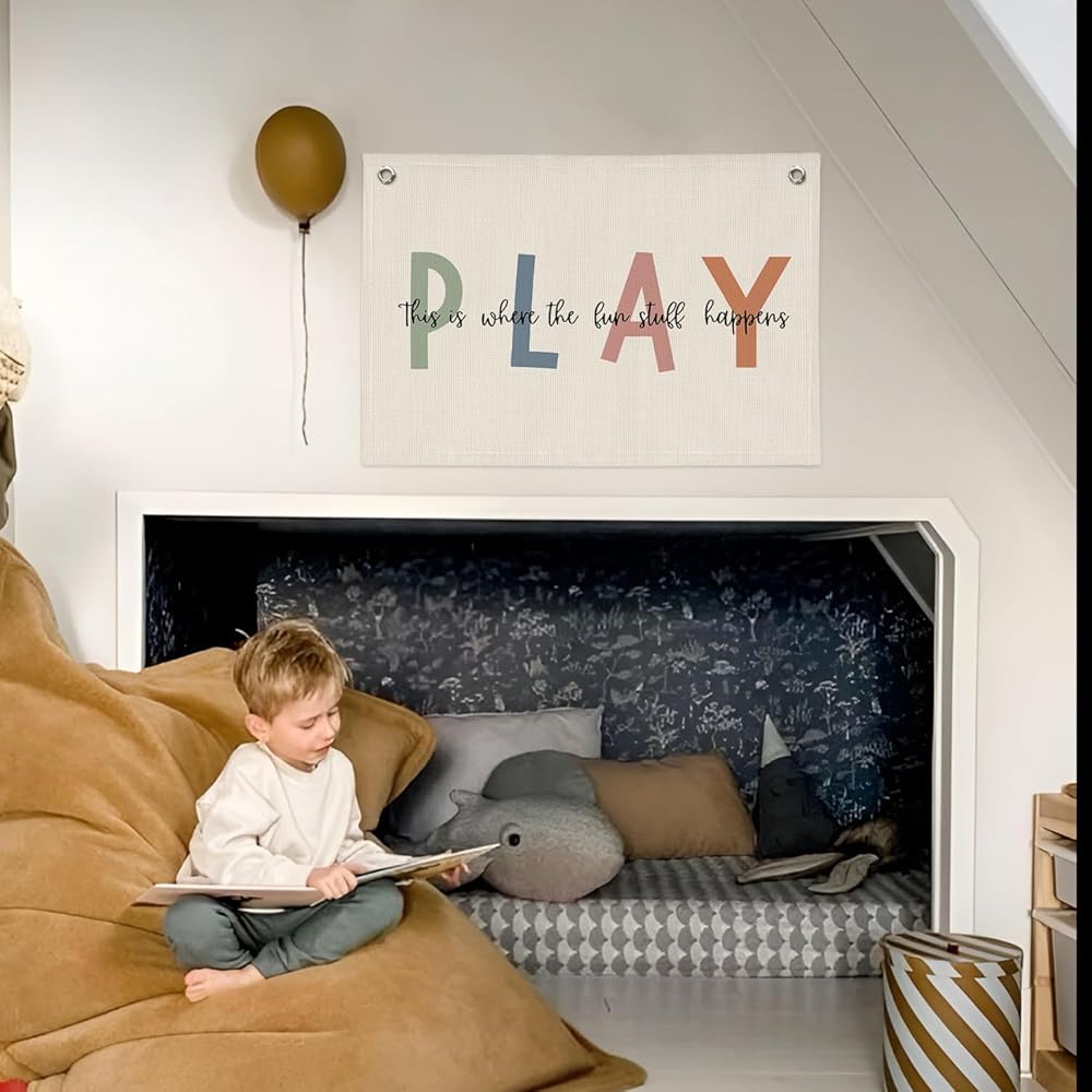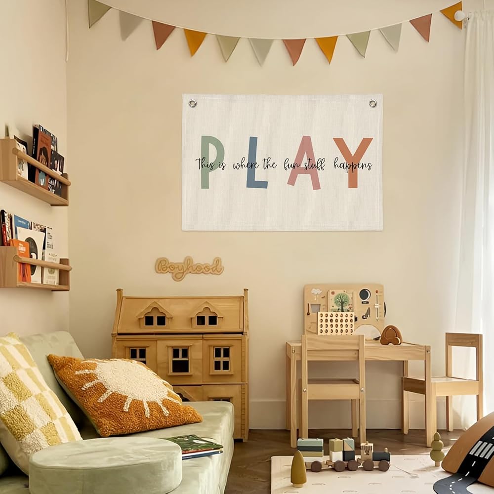 • [Stylish Room Decor] Illuminate your playroom or nursery with our canvas flag banner. Perfect for modern minimalist homes, it adds a vibrant touch to your kids' space.