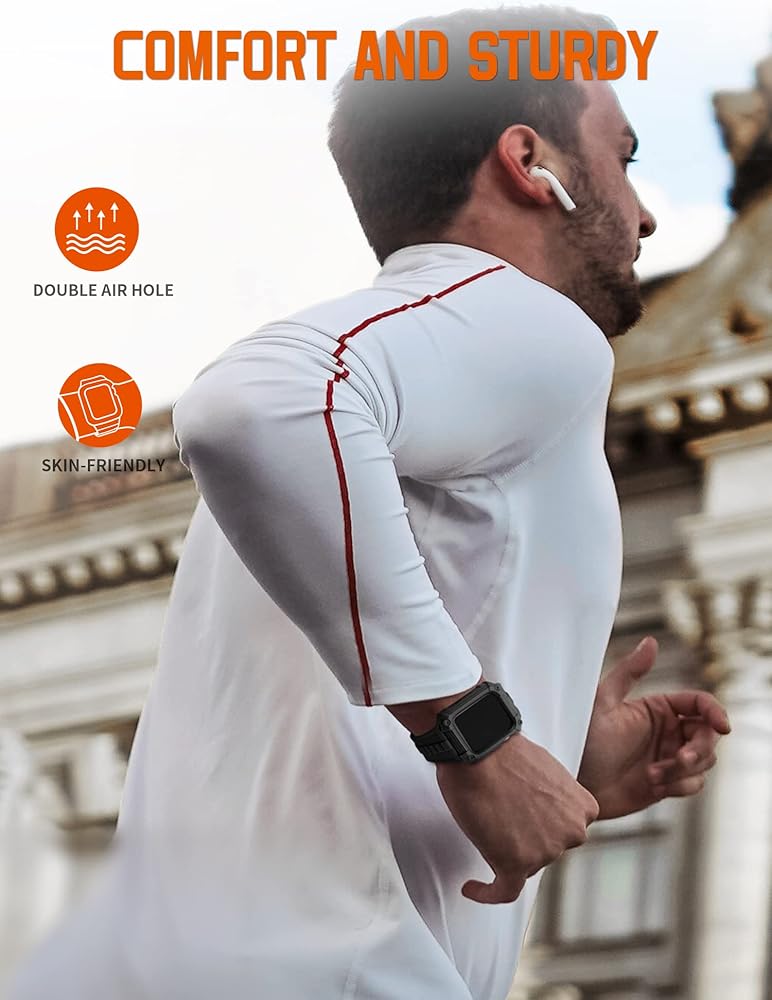 حافظة واقية متينة من الدرجة العسكرية: حماية أحادية الجسم 360 درجة وتصميم مقاوم للصدمات بحافة مرتفعة 1.8 مم لسوار ساعة Apple يحمي جهاز Apple iWatch الخاص بك من الخدوش السطحية والخدوش والصدمات والصدمات في الحياة اليومية.