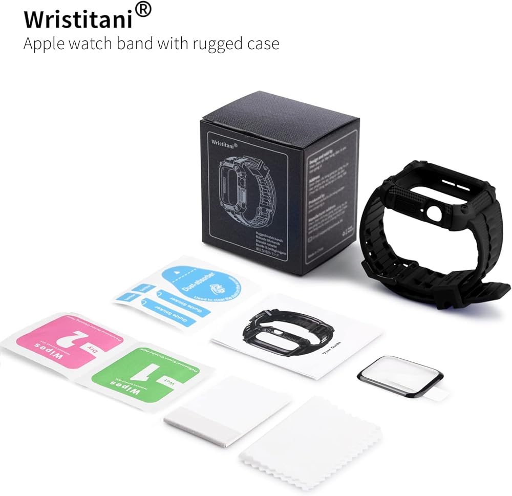 ما يتضمن: 1 × صندوق رائع، 1 × سوار ساعة المعصم مع حافظة ممتصة للصدمات، 1 × واقي شاشة مع مجموعة التثبيت (واقي الشاشة، مناديل جافة، مناديل مبللة، ملصقات إزالة الغبار، ممسحة الفقاعات)، 1 × دليل المستخدم.