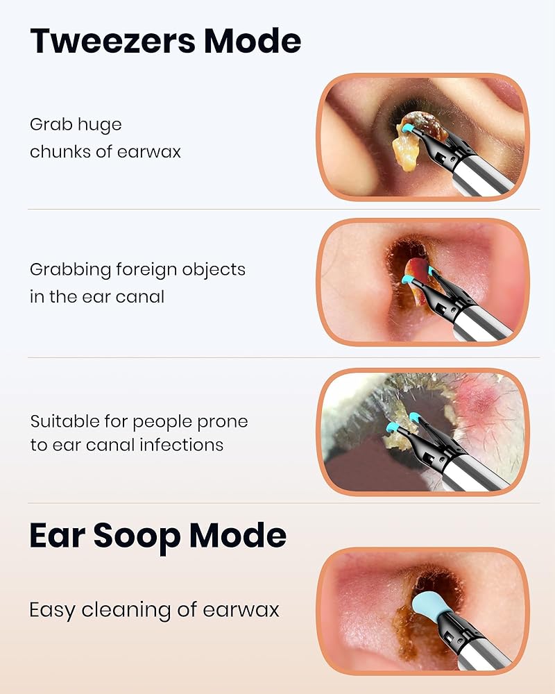 ملاقط الأذن متعددة الاتجاهات: باعتباره أول منظف للأذن في العالم مزود بملاقط، يتميز Bebird Note5 Pro بقطر يبلغ 3.5 ملم فقط وقوة تثبيت تصل إلى 0.98 نيوتن، مما يجعله فعالًا للغاية في قنوات الأذن الضيقة. إنها لا تستطيع فقط إزالة شمع الأذن الصلب والمتراكم بدون استخدام قطرات الأذن، كما أنه من الأسهل أيضًا إزالة الأجسام الغريبة من آذان وأنوف وحنجرة أطفالك "الأشقياء"...