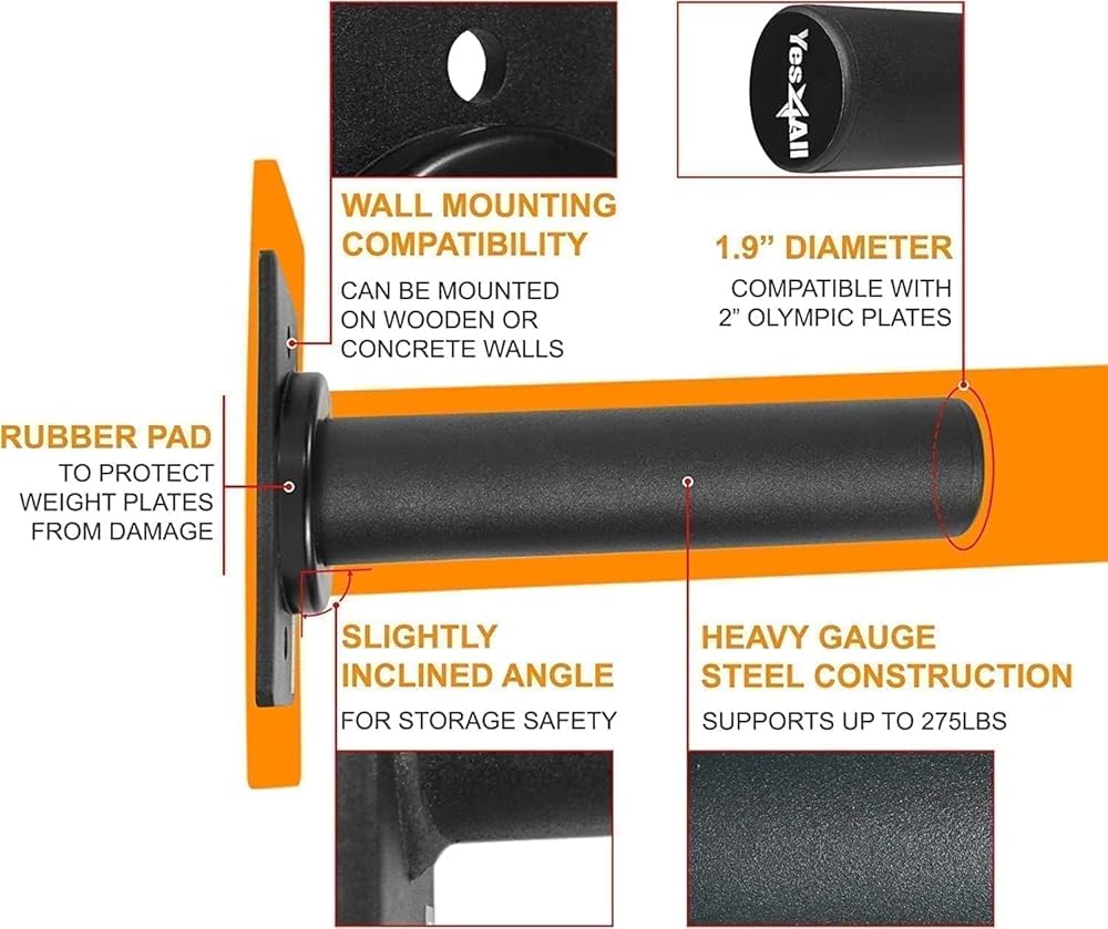 HEAVY DUTY USE: As a wall mount weight plate holder, it is made from heavy duty alloy steel and can hold upto 550lbs weight capacity; The sturdy construction maintains durability even after regular use