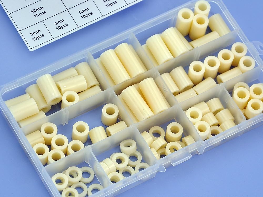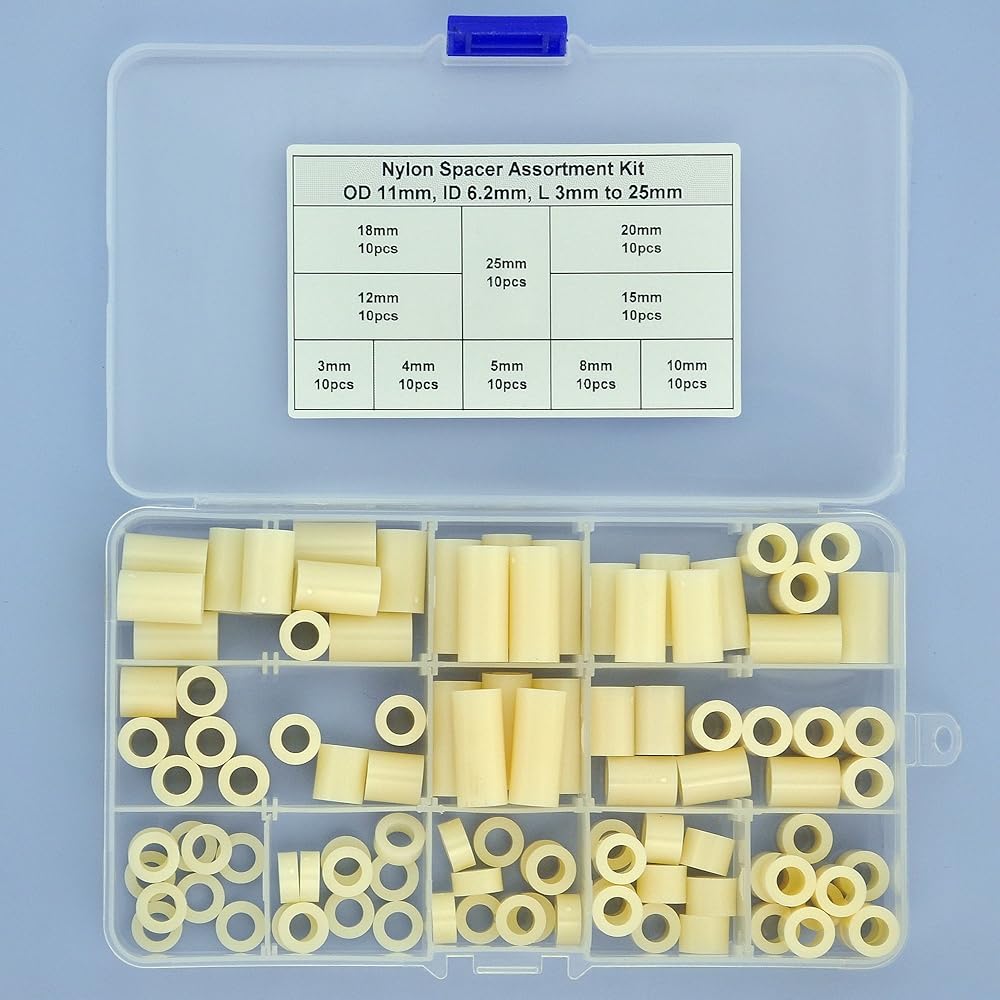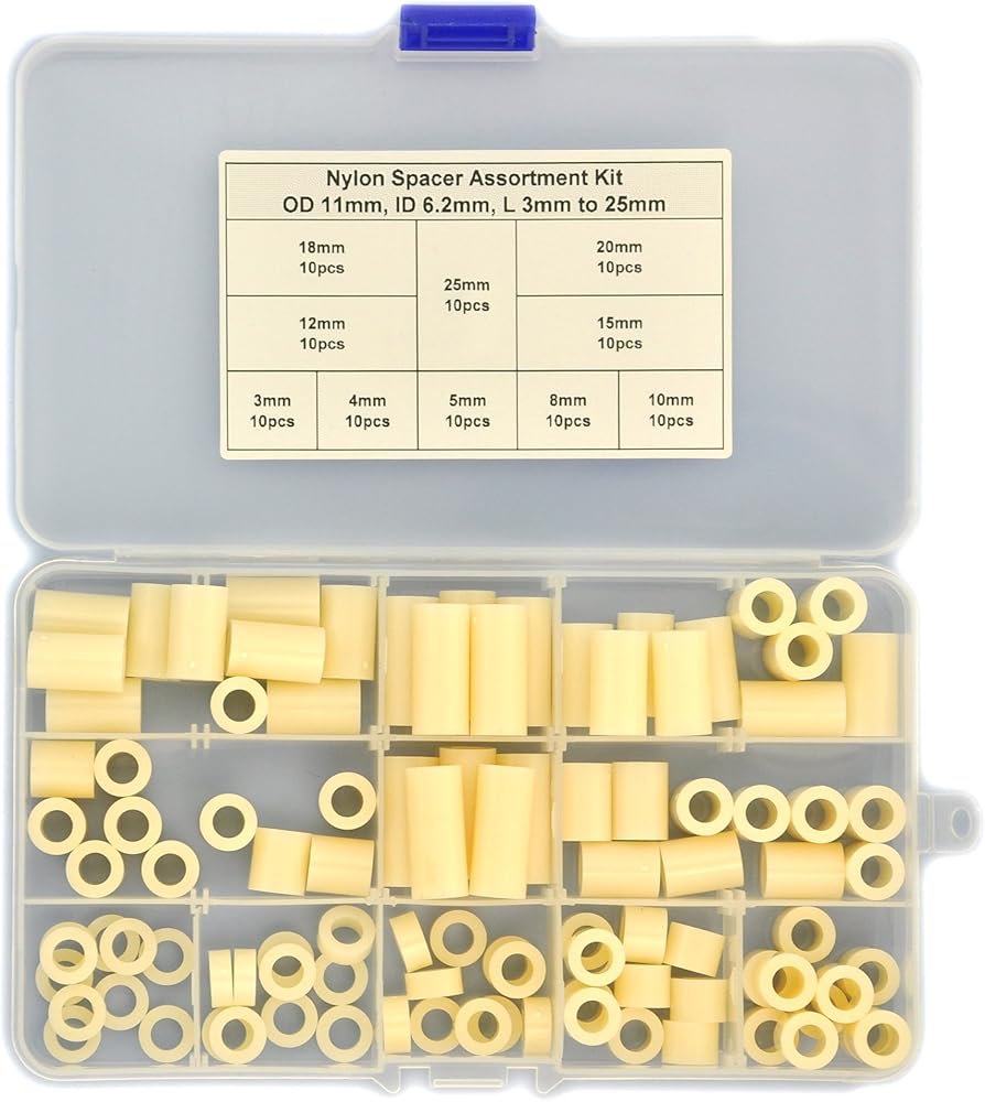 Plastic Round Spacer Assortment Kit. OD 11mm, ID 6.2mm, L 3 to 25mm, for M6 Screws.