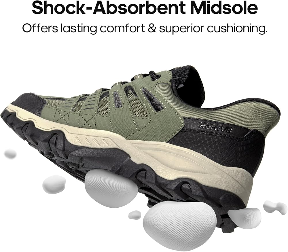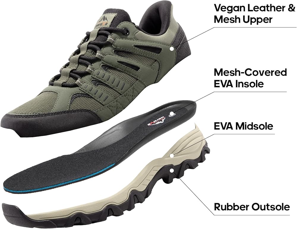 دعم مبطن: مبطنة بنعل داخلي من مادة إي في إيه مغطى بشبكة، توفر هذه الأحذية الخارجية للرجال دعمًا لقوس القدم لتناسب أشكال القدم المختلفة لراحة طوال اليوم.