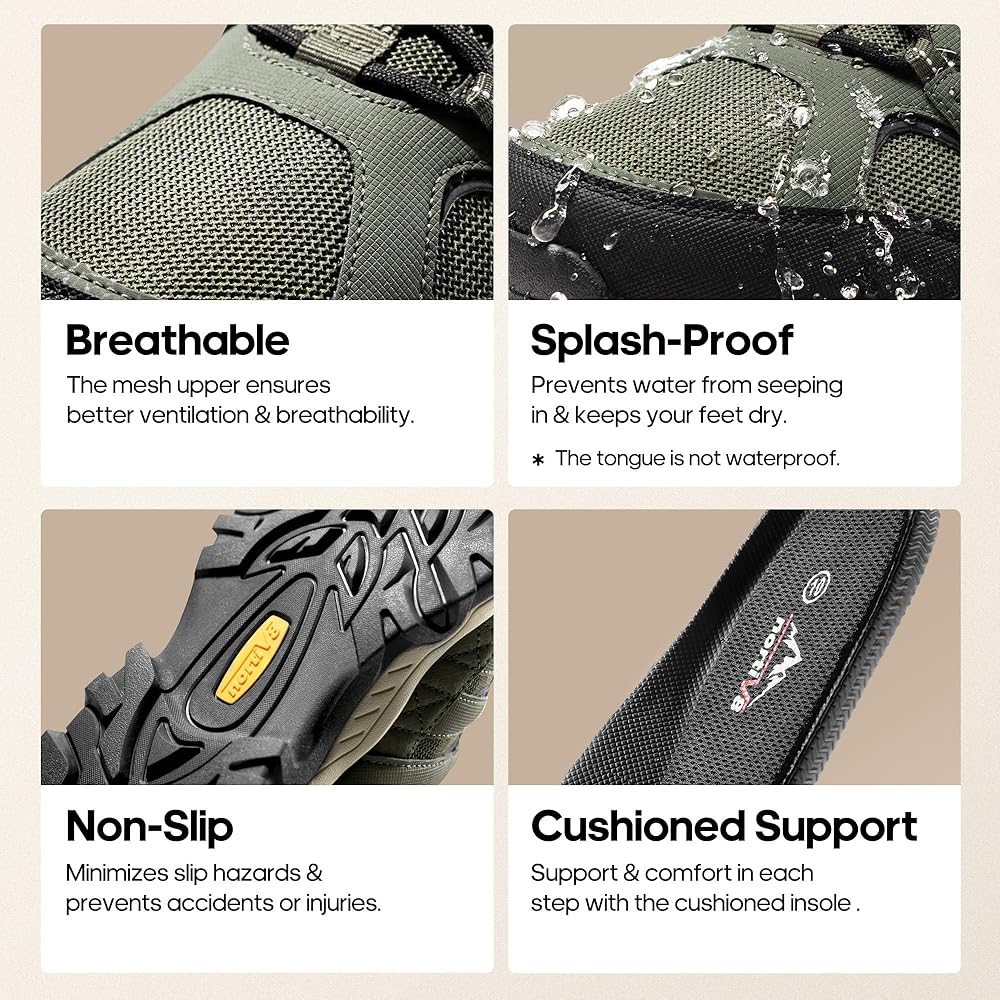 أداء متعدد الاستخدامات: مثالي للمشي لمسافات طويلة والتسلق والتخييم وغيرها من المغامرات الخارجية، توفر هذه الأحذية الخارجية للرجال التنوع والوظيفة التي تحتاجها للتغلب على أي التضاريس بثقة.