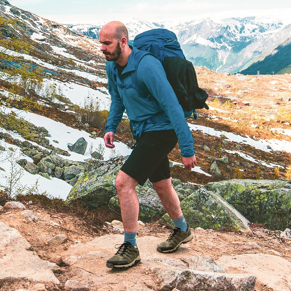 جزء علوي مسامي: مع جلد نباتي وجزء علوي من القماش الشبكي، توفر أحذية المشي لمسافات طويلة هذه للرجال تدفق هواء مثالي ودعم هيكلي لارتداء طويل الأمد.