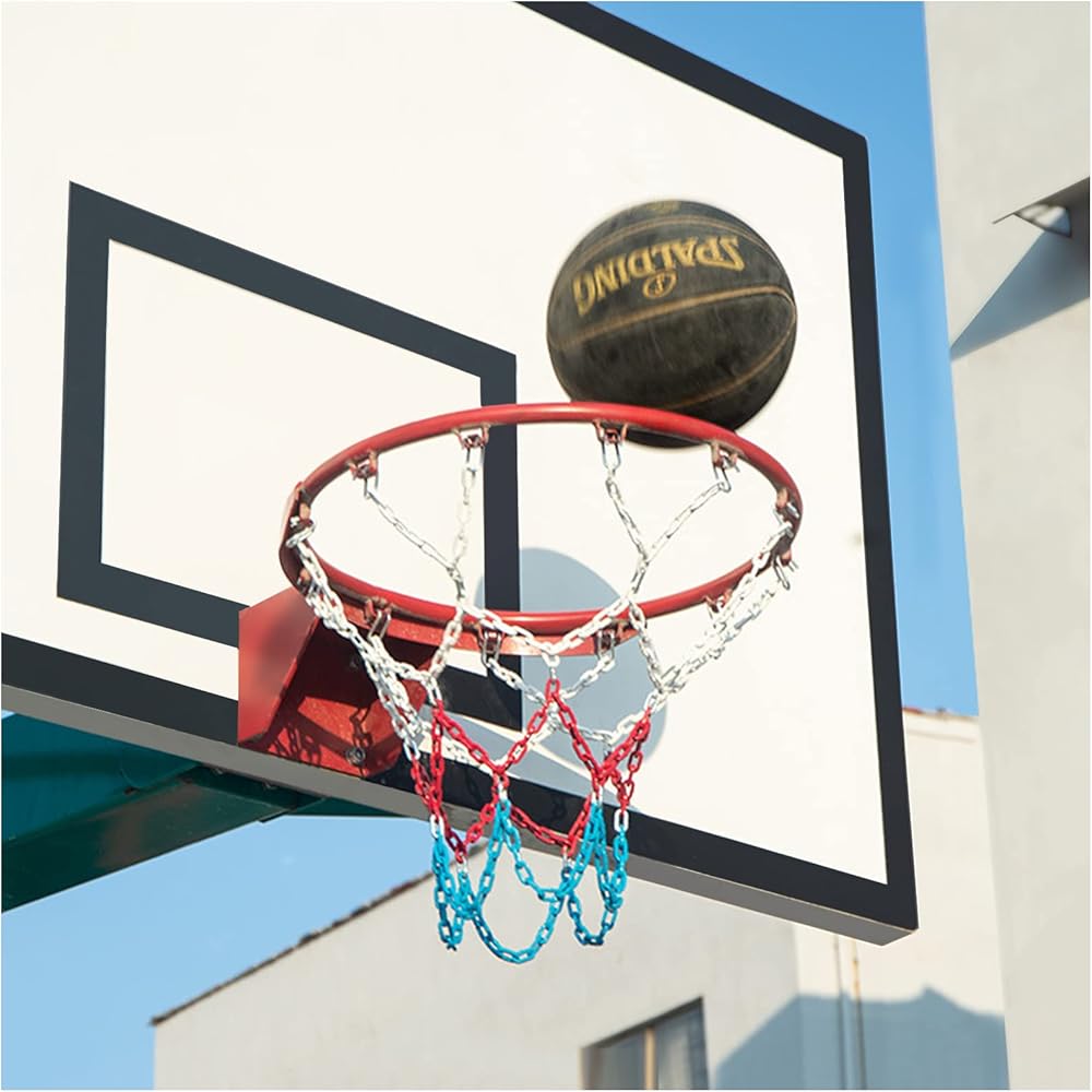 • Heavy Duty Metal Chain Net: Made of rust proof, zinc plated galvanized iron, this chain basketball net is sure to hold up to the most intense play and outdoor weather conditions all year round