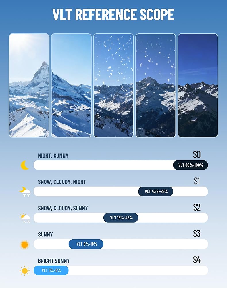 • مقاومة فائقة للضباب: مجهزة بتقنية مزدوجة الطبقات مضادة للضباب وعدسات إيطالية، تضمن نظارات التزلج على الجليد هذه أداءً طويل الأمد ضد الضباب. علاوة على ذلك، فهي تتميز بستة فتحات تهوية إضافية لتحسين تبديد الحرارة. يضمن منع الضباب الممتاز والحماية من الأشعة فوق البنفسجية تجربة تزلج مريحة.